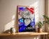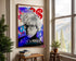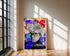 Psychodeliczna Paleta Barw: Zastosowanie nasyconego błękitu, intensywnej fuksji i czerwieni nadaje pracy głębię i sprawia, że plakat przyciąga wzrok z dużej odległości.