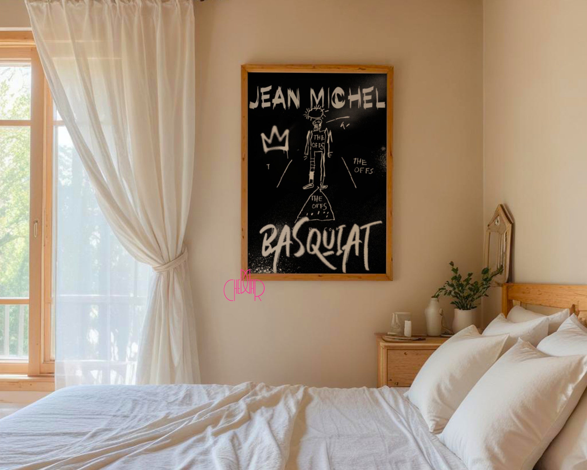 Sztuka w swojej najczystszej, nieoszlifowanej formie Ten projekt rezygnuje z feerii barw na rzecz potężnego kontrastu czerni i bieli. Skupia się na najbardziej rozpoznawalnych symbolach artysty: ikonicznej koronie, postaciach przypominających szkielety oraz charakterystycznych napisach "THE OFFS". Kompozycja wygląda jak fragment muru pokryty szybkim, energetycznym graffiti, co nadaje jej niesamowitej autentyczności.