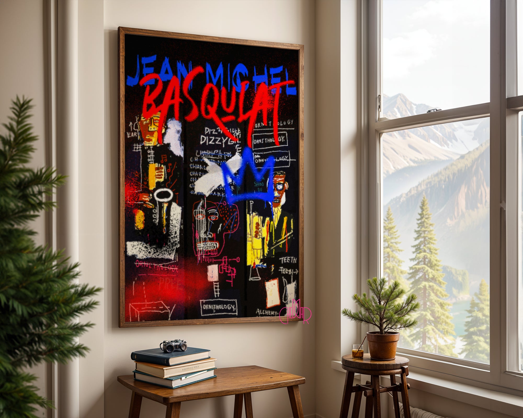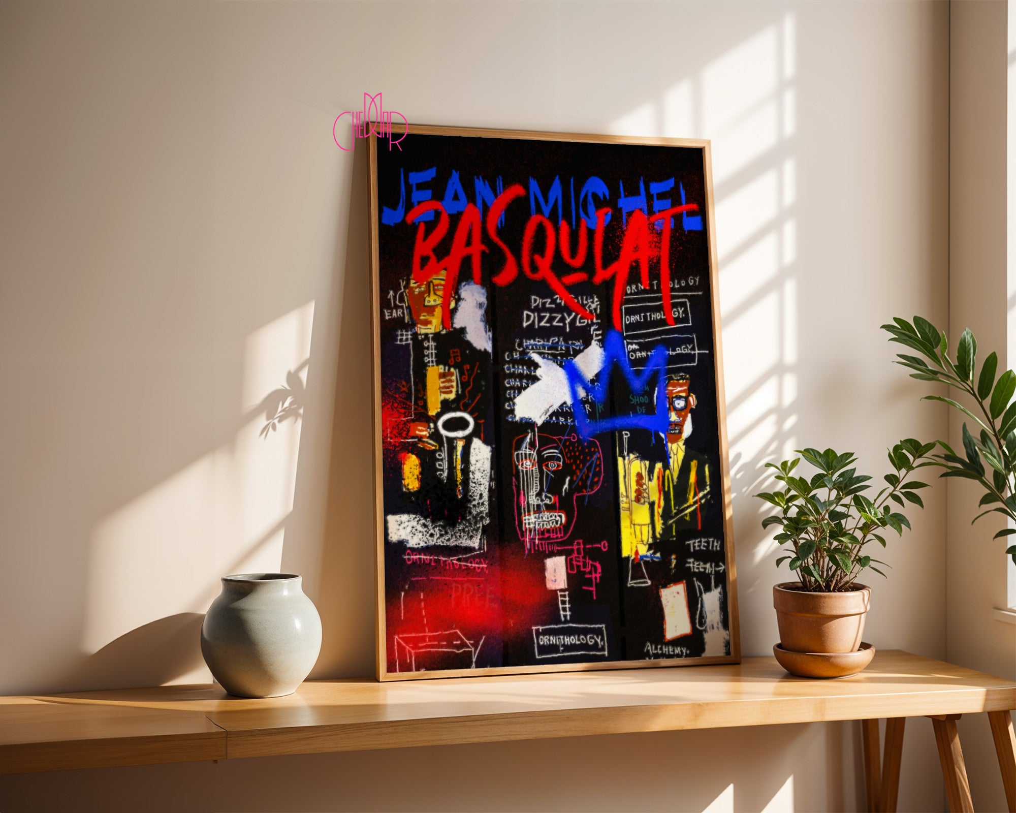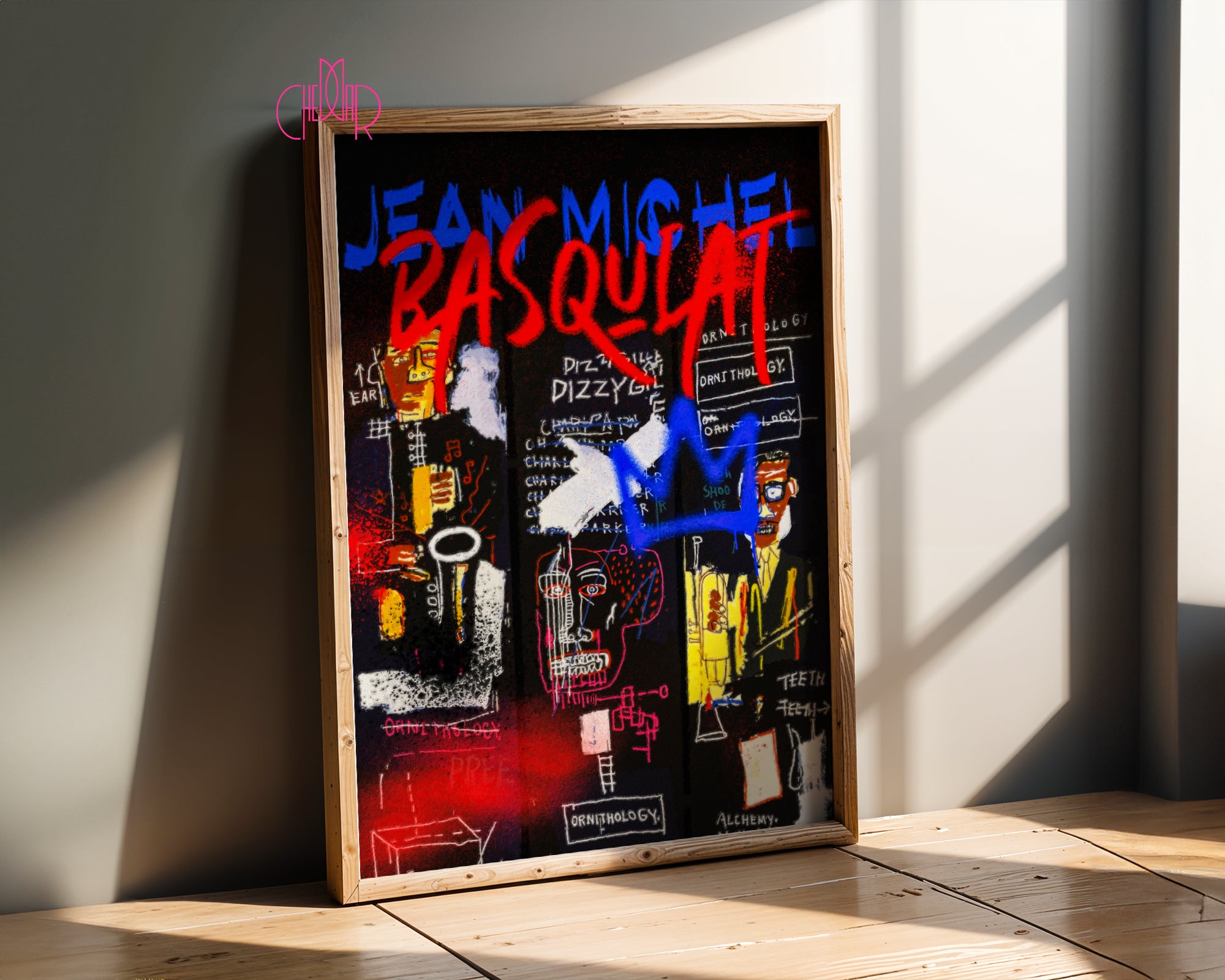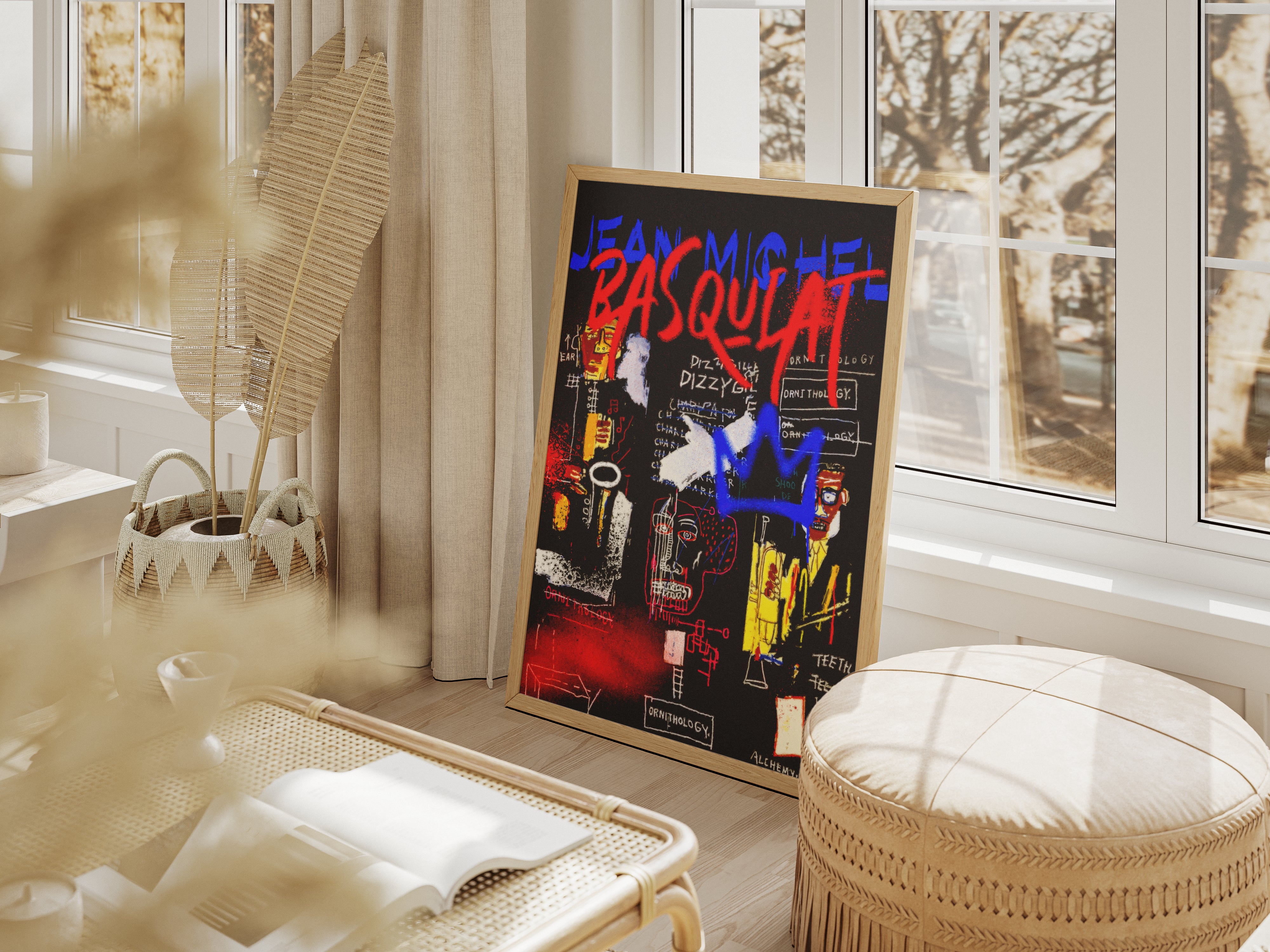 Gdy obraz zaczyna brzmieć jak jazz Ten projekt to wizualna improwizacja. Na głębokim, czarnym tle Basquiat (poprzez swoją stylistykę) „zapisuje” historię muzyki. Widzimy tu postacie muzyków, napisy nawiązujące do ornitologii (pseudonim Parkera to „Bird”) oraz charakterystyczne dla artysty skreślenia, które paradoksalnie przyciągają wzrok jeszcze bardziej. To plakat dla tych, którzy kochają sztukę z duszą, rytmem i historią.