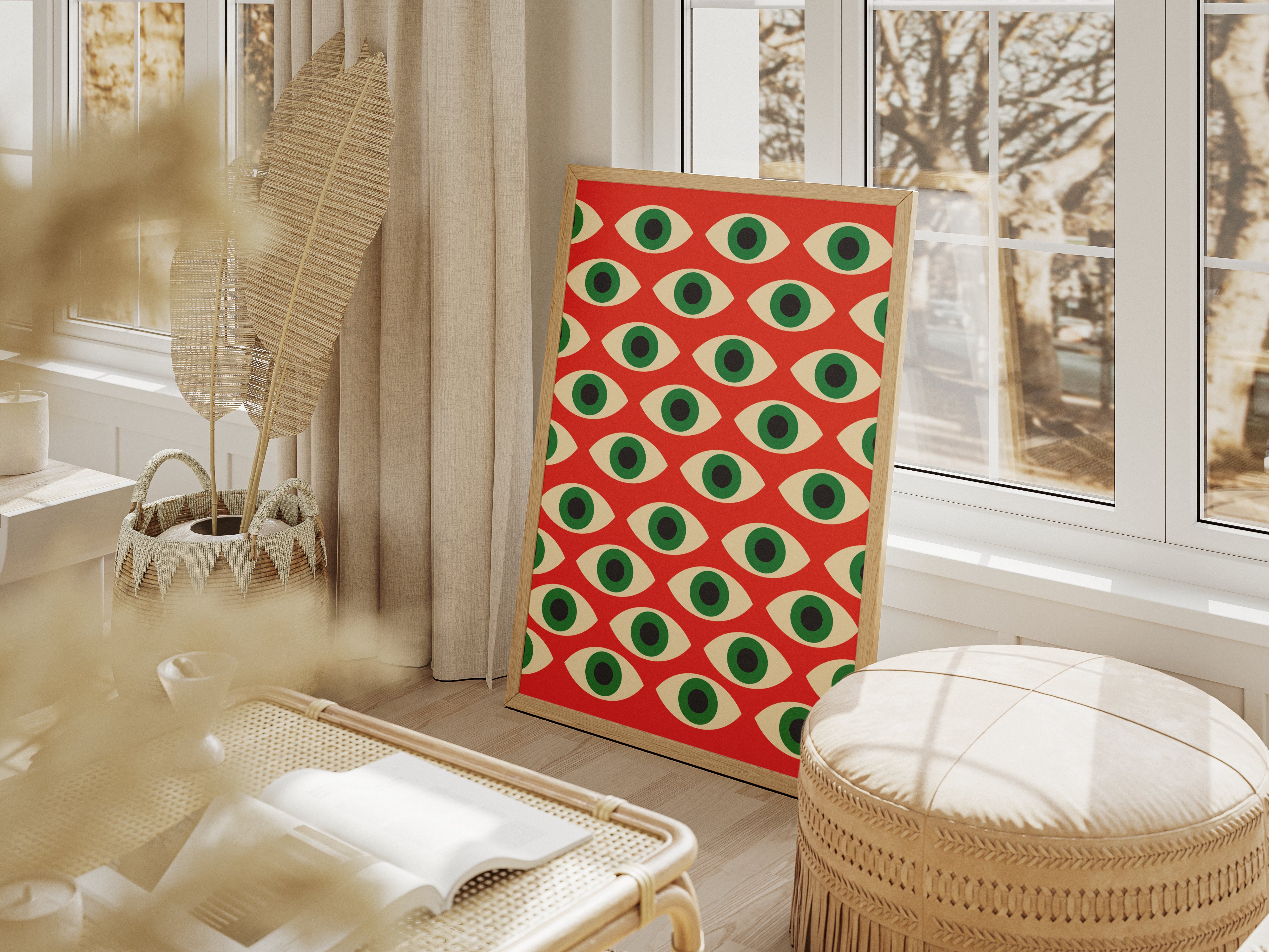 Plakat Bauhaus Geometryczny – Czerwony Wzór z Oczami, reto, vintage