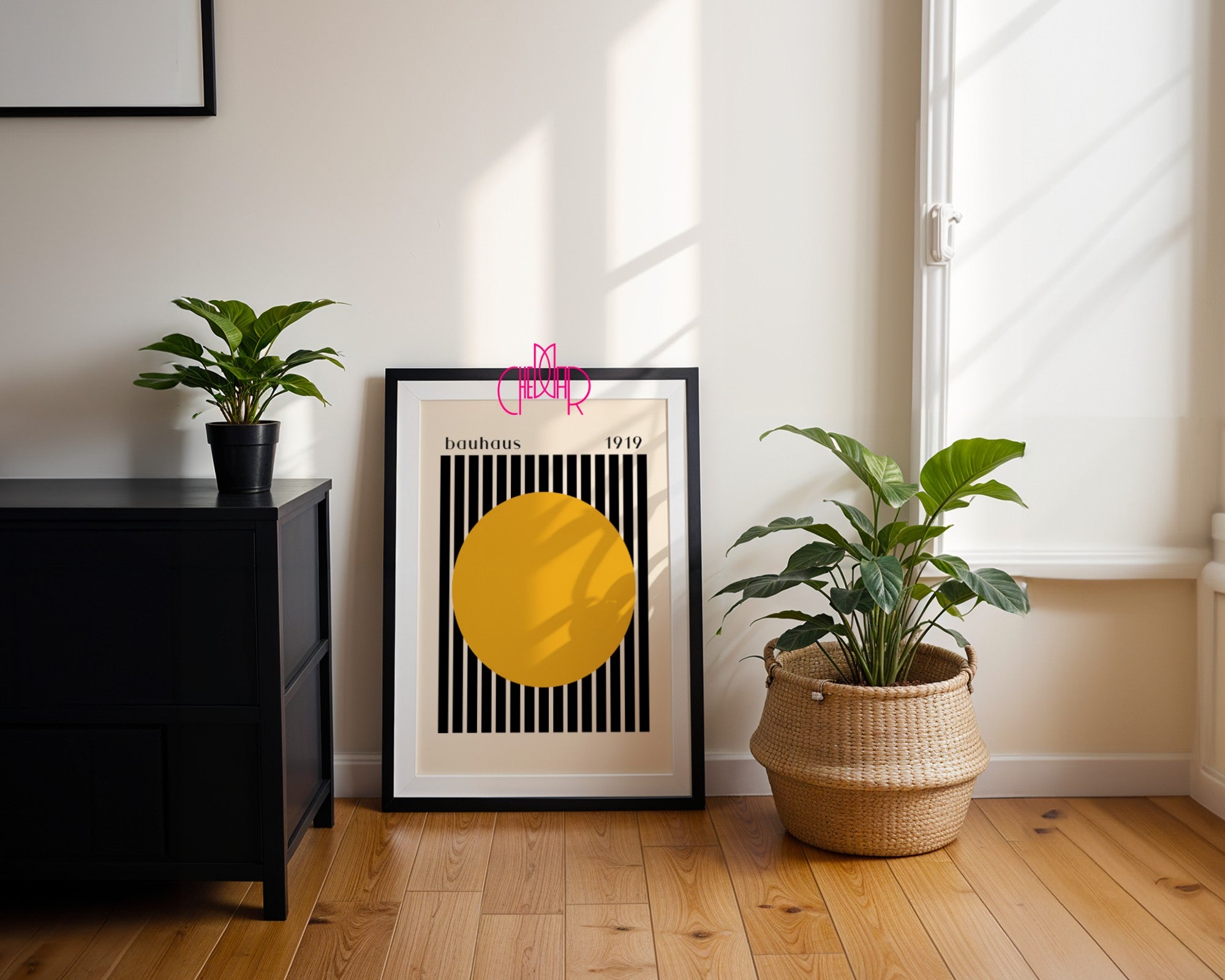 Ożyw swoje wnętrze wyjątkowym plakatem w stylu Bauhaus! Pomarańczowa kropka na tle czarno-beżowych pasków to minimalistyczna kompozycja, która łączy geometryczną harmonię z wyrazistym akcentem koloru. Idealny wybór dla miłośników modernizmu, designu i ponadczasowej sztuki.