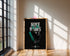 Odkryj mroczną stronę designu Ten plakat to wizualna oda do jednej z najbardziej pożądanych kolaboracji w świecie nowoczesnego designu. Przedstawia on parę czarnych, zamszowych butów o unikalnej fakturze, których najbardziej charakterystycznym elementem jest neonowa, świecąca w ciemności podeszwa w kolorze intensywnego turkusu. Grafika emanuje aurą ekskluzywności i mrocznej elegancji, zawieszając produkt w głębokiej czerni, która podkreśla każdy detal materiału i neonowy blask.
