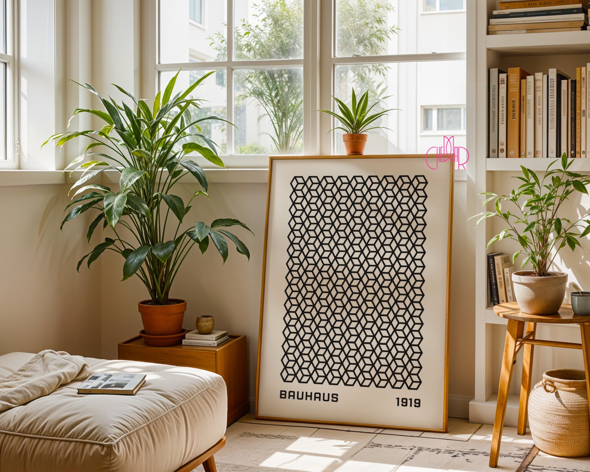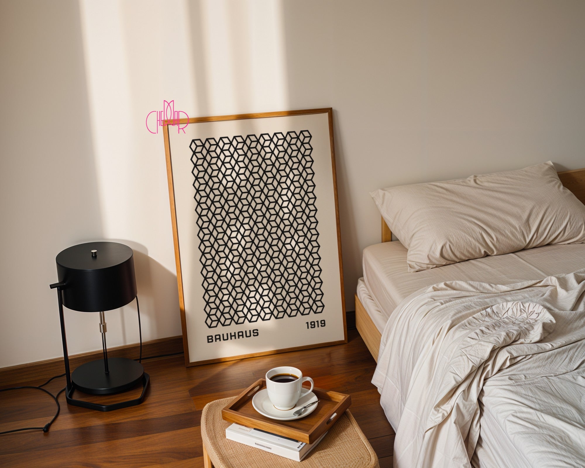 Dodaj wyjątkowy akcent do swojego wnętrza dzięki plakatowi inspirowanemu Bauhausem – „Czarne geometryczne kwadraty na beżowym tle, wystawa 1919, retro, vintage”. To idealna dekoracja dla miłośników sztuki współczesnej, minimalistycznych form i geometrycznych wzorów. Świetnie sprawdzi się w salonie, sypialni, biurze, korytarzu, pokoju dziecka, a także w kawiarni, restauracji czy przestrzeni coworkingowej.