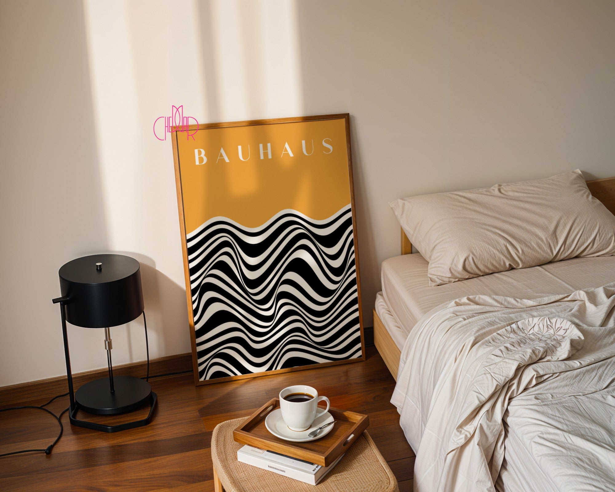 Dodaj wyjątkowy akcent do swojego wnętrza dzięki plakatowi inspirowanemu Bauhausem – „Czarne abstrakcyjne linie na pomarańczowym tle”. To idealna dekoracja dla miłośników sztuki współczesnej, minimalistycznych form i geometrycznych wzorów. Świetnie sprawdzi się w salonie, sypialni, biurze, korytarzu, pokoju dziecka, a także w kawiarni, restauracji czy przestrzeni coworkingowej.