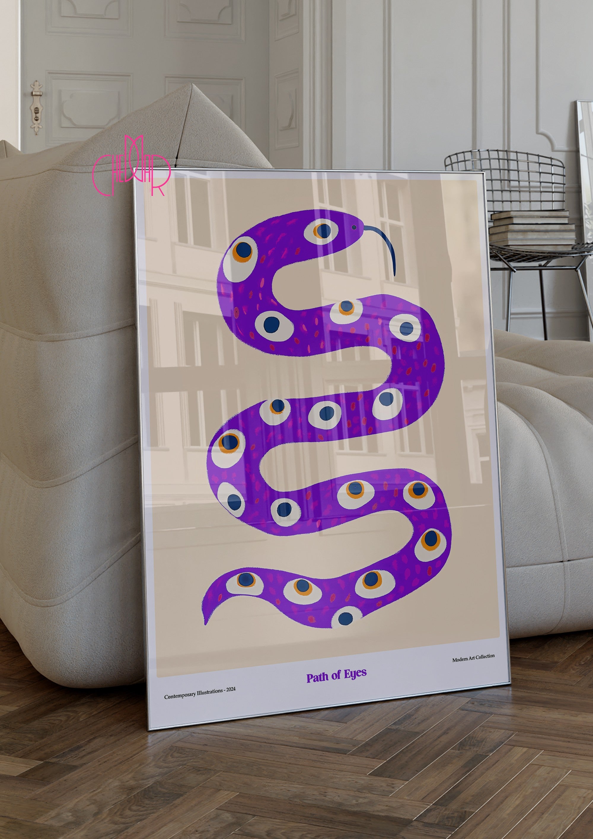 Plakat Path of Eyes, Wąż z oczami, modernizm, sztuka współczesna