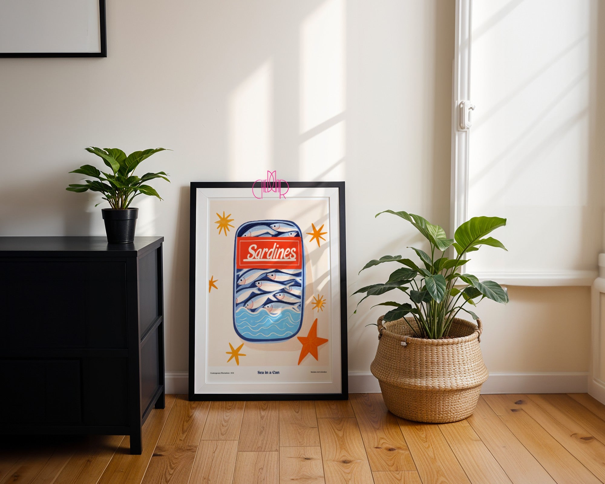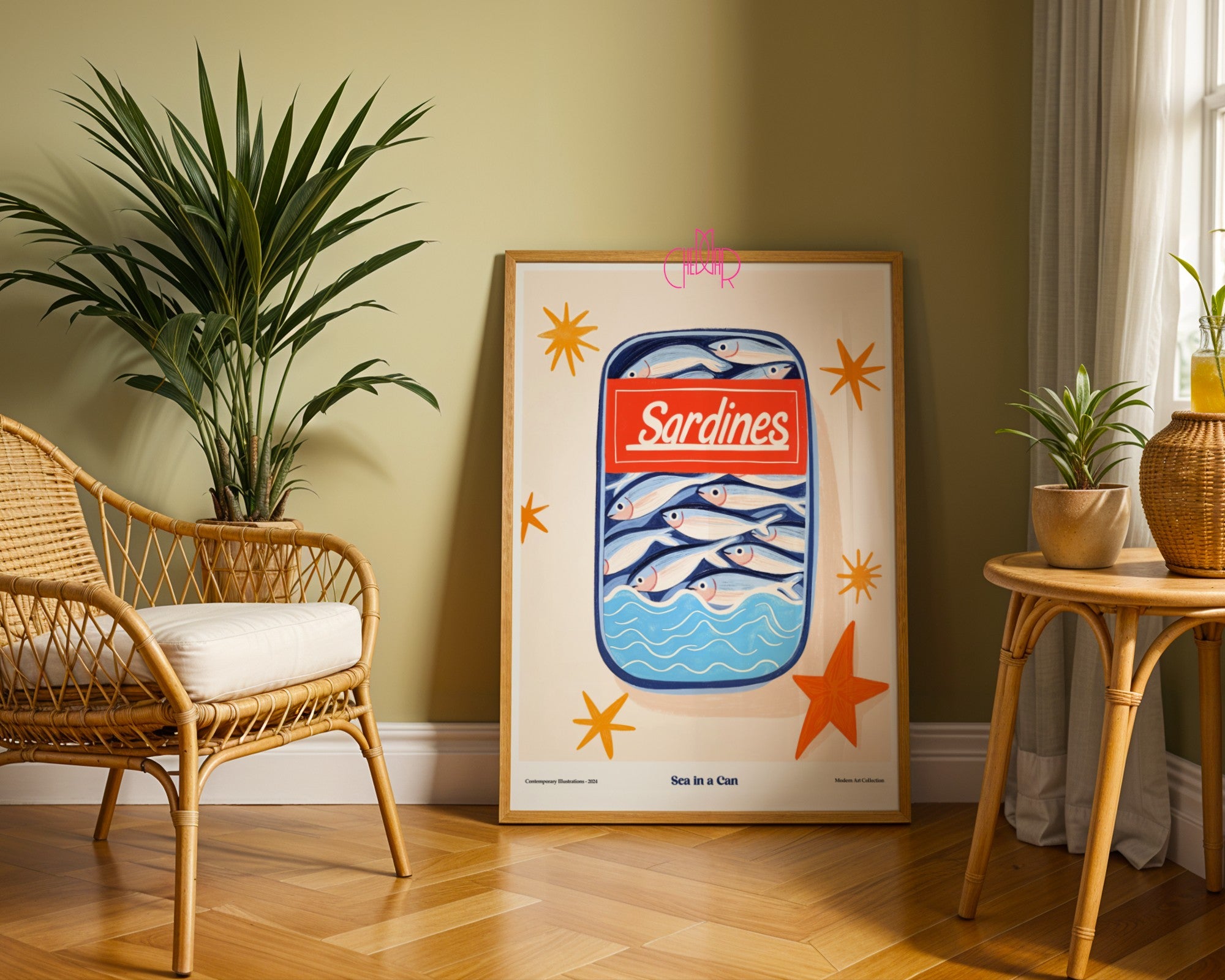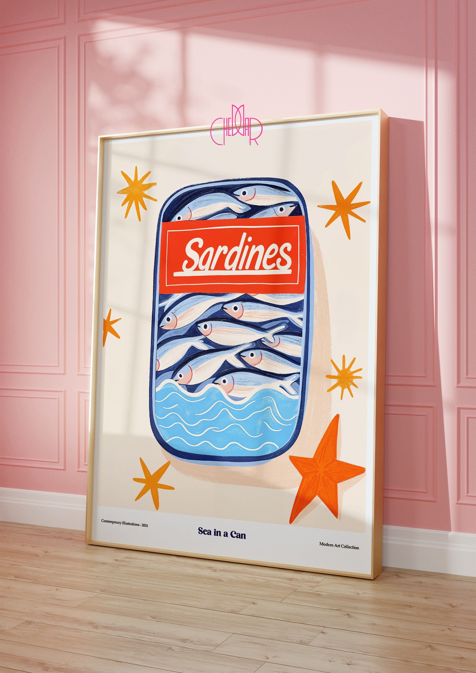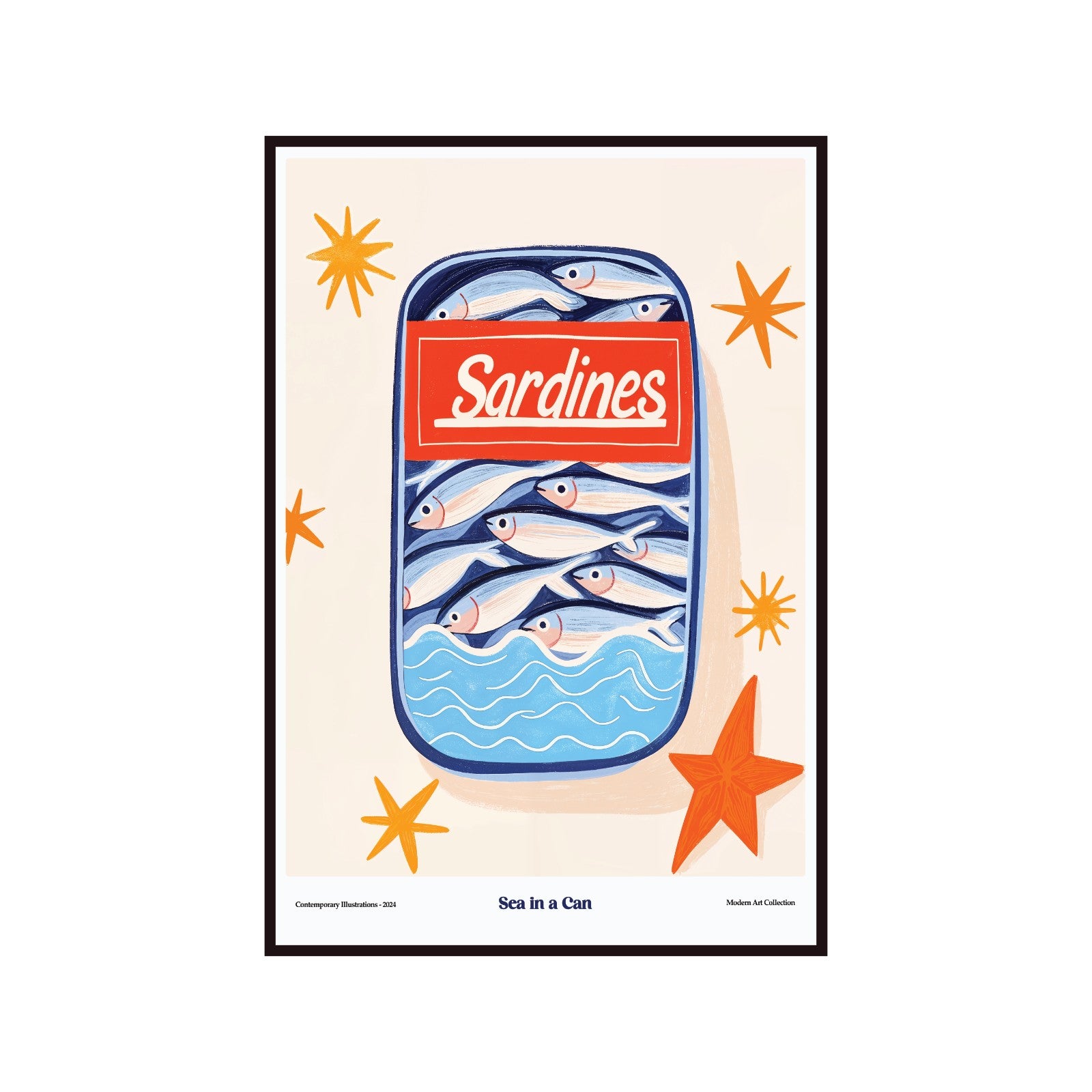 Plakat Sardynki- morze w puszce, modernizm, sztuka współczesna