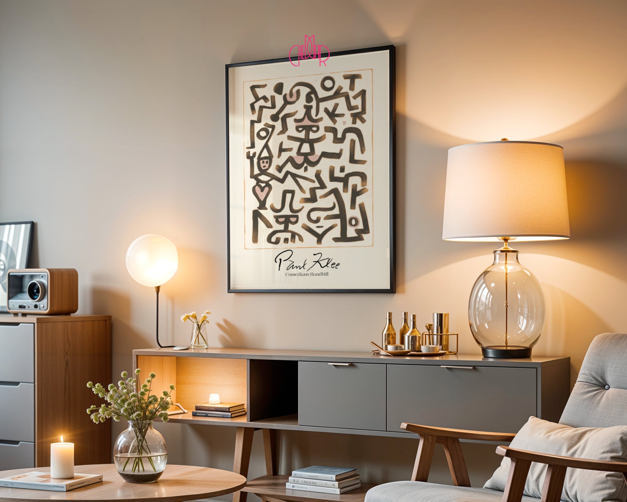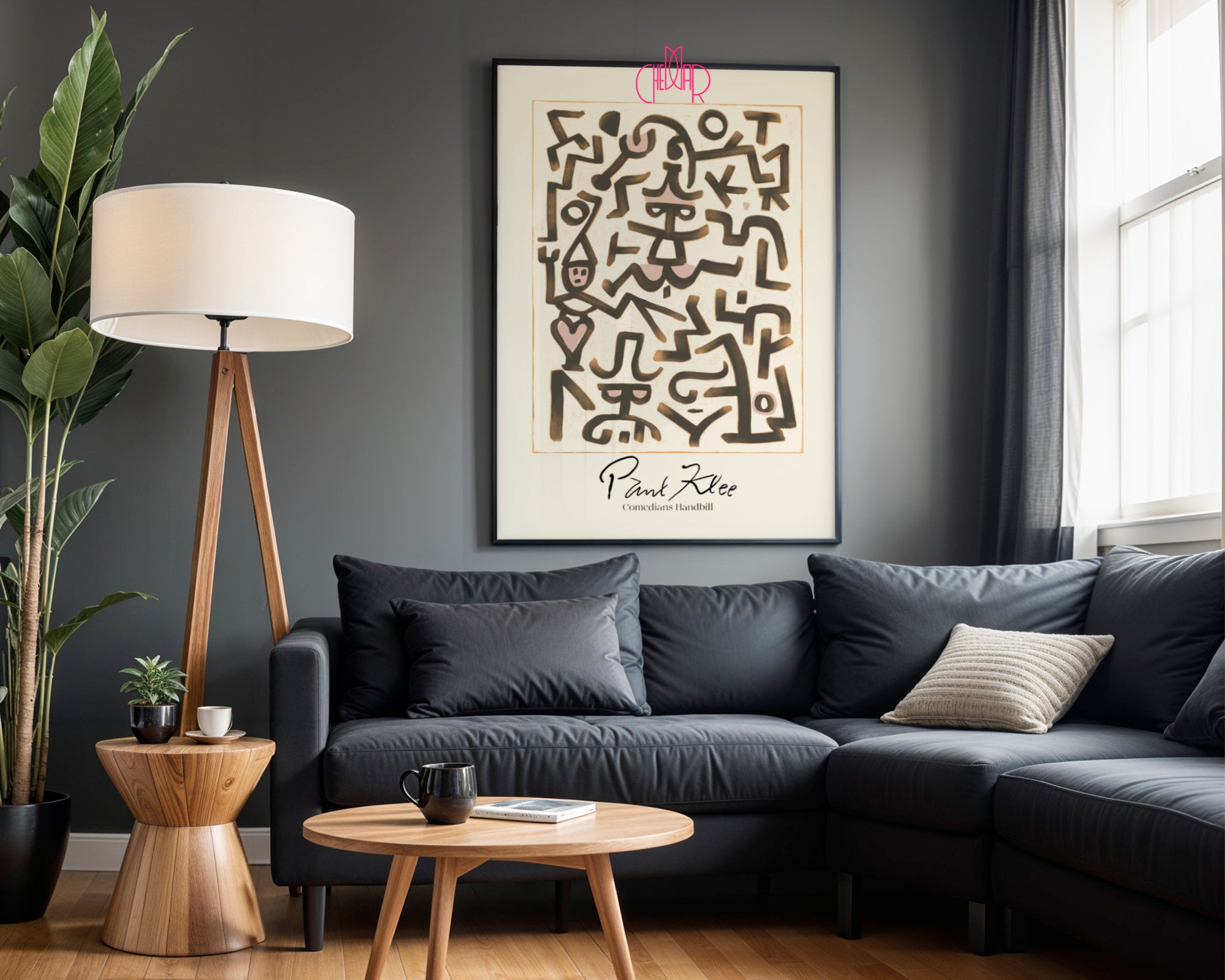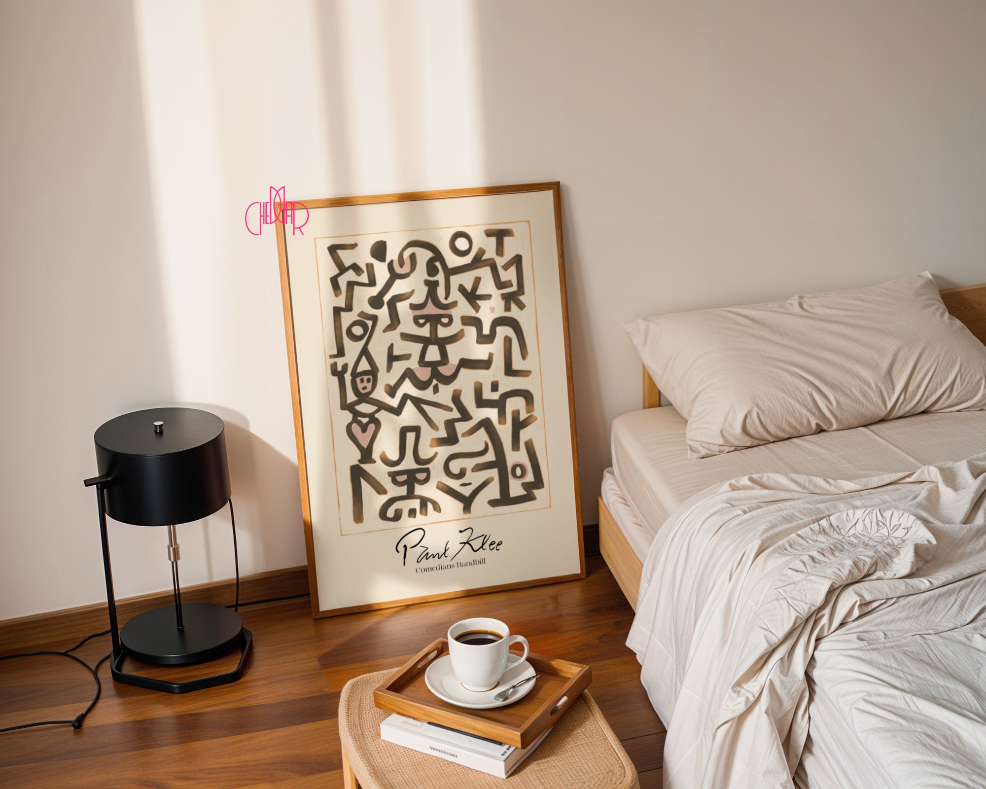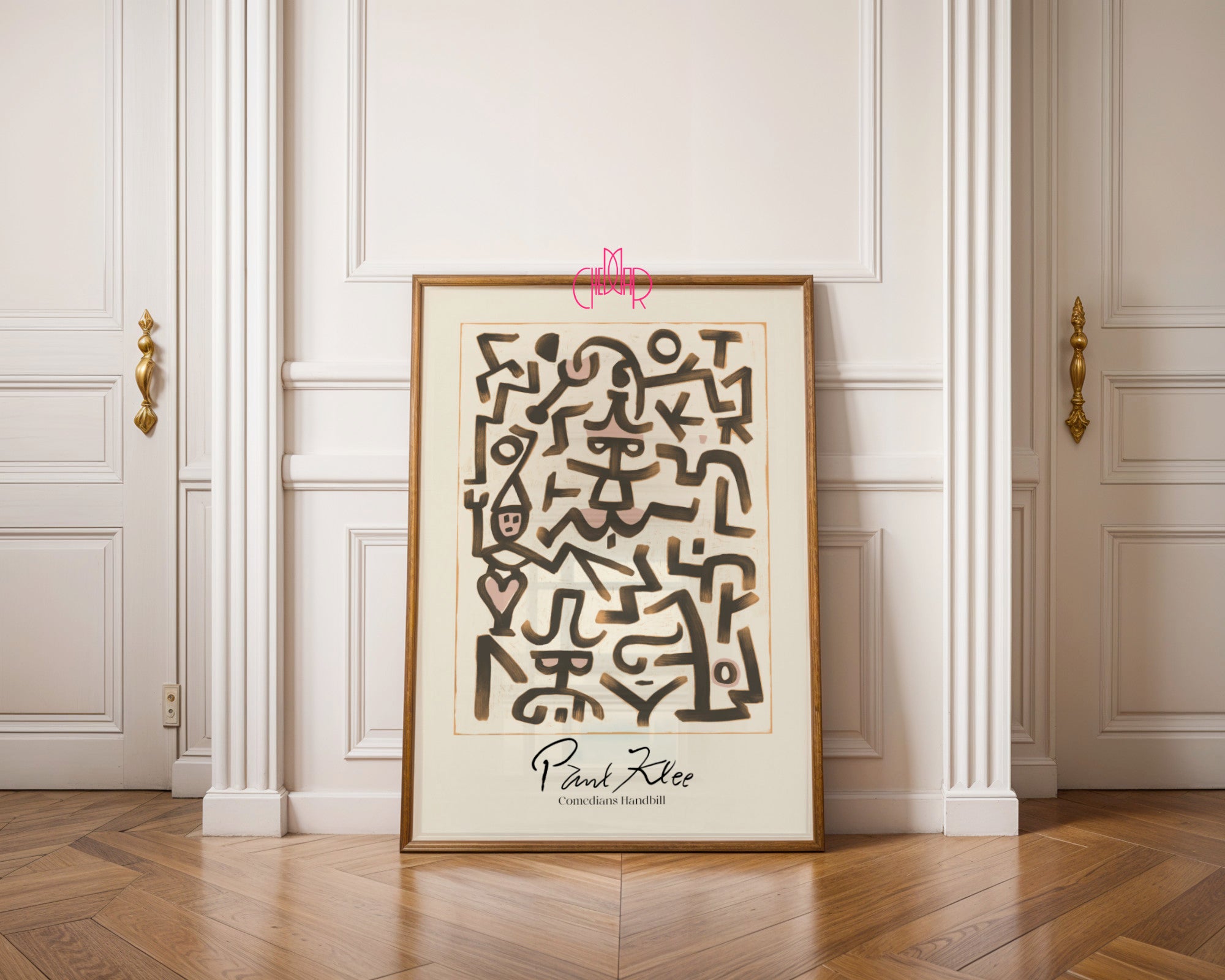 Odkryj magię szwajcarsko-niemieckiego mistrza z jednym z jego najbardziej charakterystycznych projektów. Ten stylowy poster to reprodukcja dzieła „Comedians Handbill”, które łączy w sobie surowe, czarne linie z delikatnymi akcentami pudrowego różu. Kompozycja przypomina zbiór hieroglifów lub marionetek, tworząc dynamiczny i lekko zabawny układ form, który jest znakiem rozpoznawczym twórczości Klee.