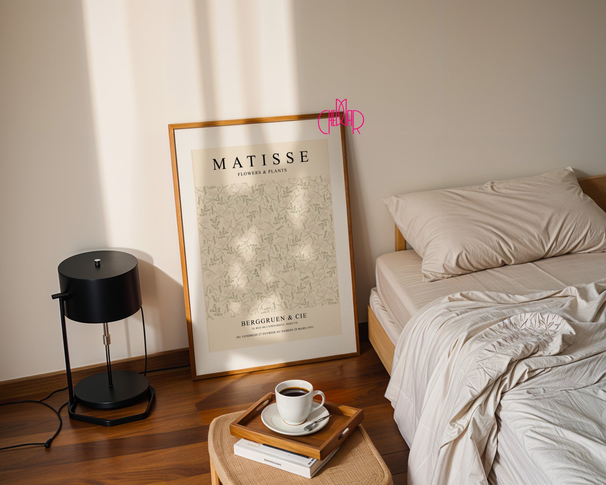 Rytm natury i paryski szyk Wprowadź do swojego domu atmosferę powojennej awangardy dzięki plakatowi przedstawiającemu gęsty, kwiatowy wzór Henri Matisse’a. Ta unikalna grafika, stworzona na potrzeby wystawy w prestiżowej galerii Berggruen & Cie w 1953 roku, to fascynujące studium roślinnych form. Powtarzalność delikatnych, konturowych rysunków kwiatów tworzy hipnotyzujący wzór, który emanuje lekkością i harmonią.
