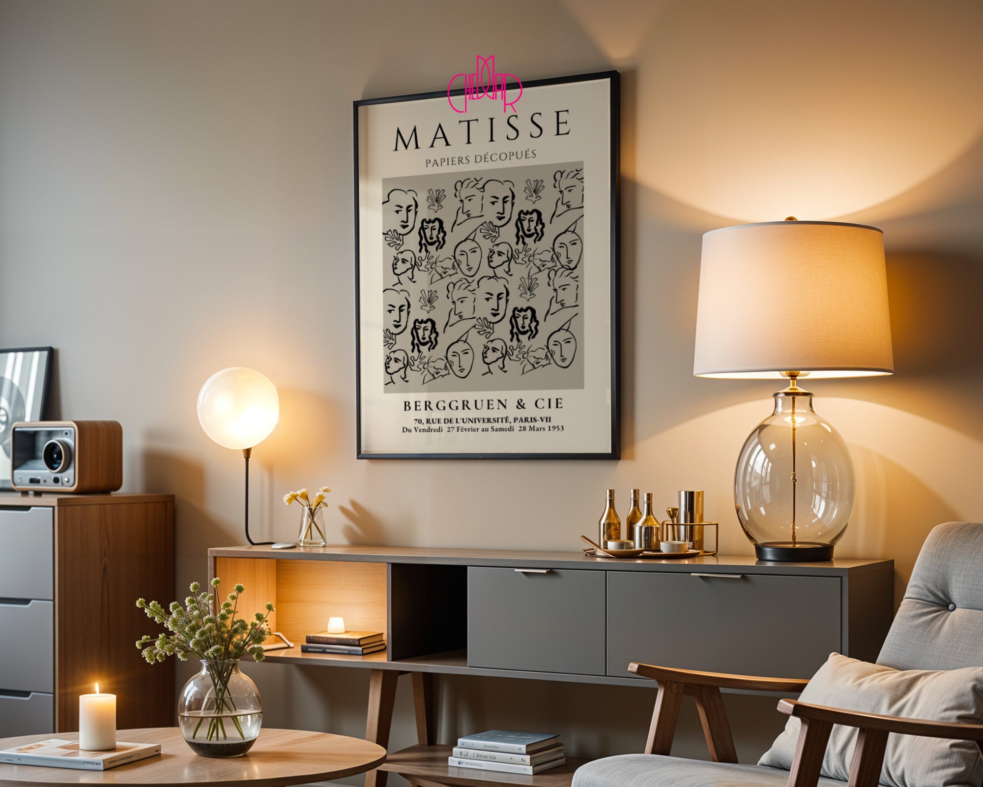 Historyczna autentyczność: Typografia nawiązująca do oryginalnych afiszów wystawowych nadaje dekoracji kolekcjonerski sznyt.