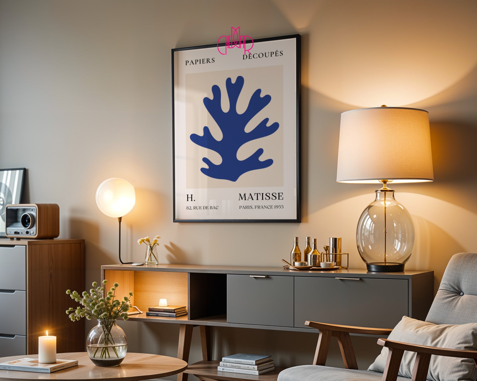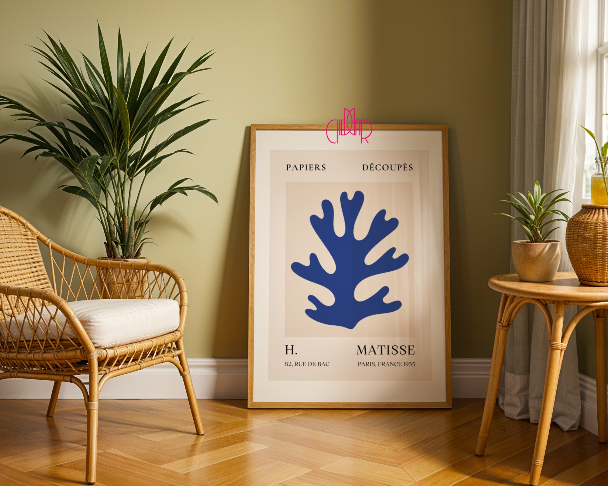Głębia oceanu w sercu Paryża Wprowadź do swojego domu powiew morskiej świeżości i artystycznej wolności dzięki temu wyjątkowemu plakatowi Henri Matisse’a. Grafika przedstawia ikoniczny motyw niebieskiej algi, który stał się jednym z najbardziej rozpoznawalnych symboli techniki „Papiers Découpés” (wycinanek). Wyrazisty, kobaltowy kształt na ciepłym, beżowym tle to kwintesencja nowoczesnego minimalizmu. Projekt nawiązuje do dziedzictwa artysty związanego z paryską Rue de Bac z 1955 roku, łącząc francuski szyk z organicznym pięknem natury.