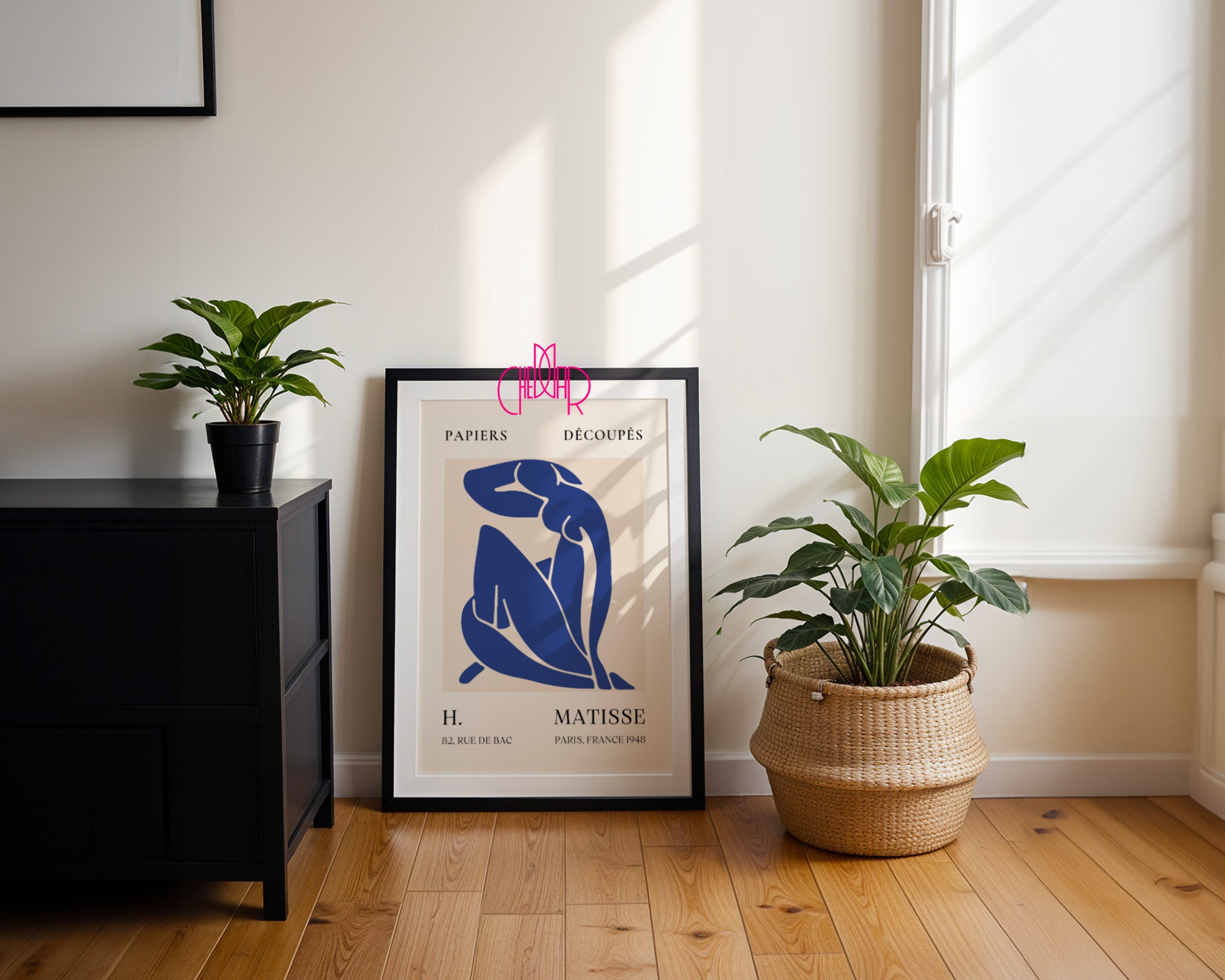 Elegancja linii i śródziemnomorski spokój Zanurz się w świecie późnej twórczości Henri Matisse’a dzięki temu ikonicznemu plakatowi z serii „Papiers Découpés”. Grafika przedstawia minimalistyczną, niebieską sylwetkę siedzącej postaci – symbol artystycznej wolności i spokoju. Projekt nawiązuje do dziedzictwa artysty związanego z wystawą przy paryskiej Rue de Bac, łącząc klasyczny temat aktu z nowoczesną, płaską plamą barwną, która stała się fundamentem sztuki współczesnej.