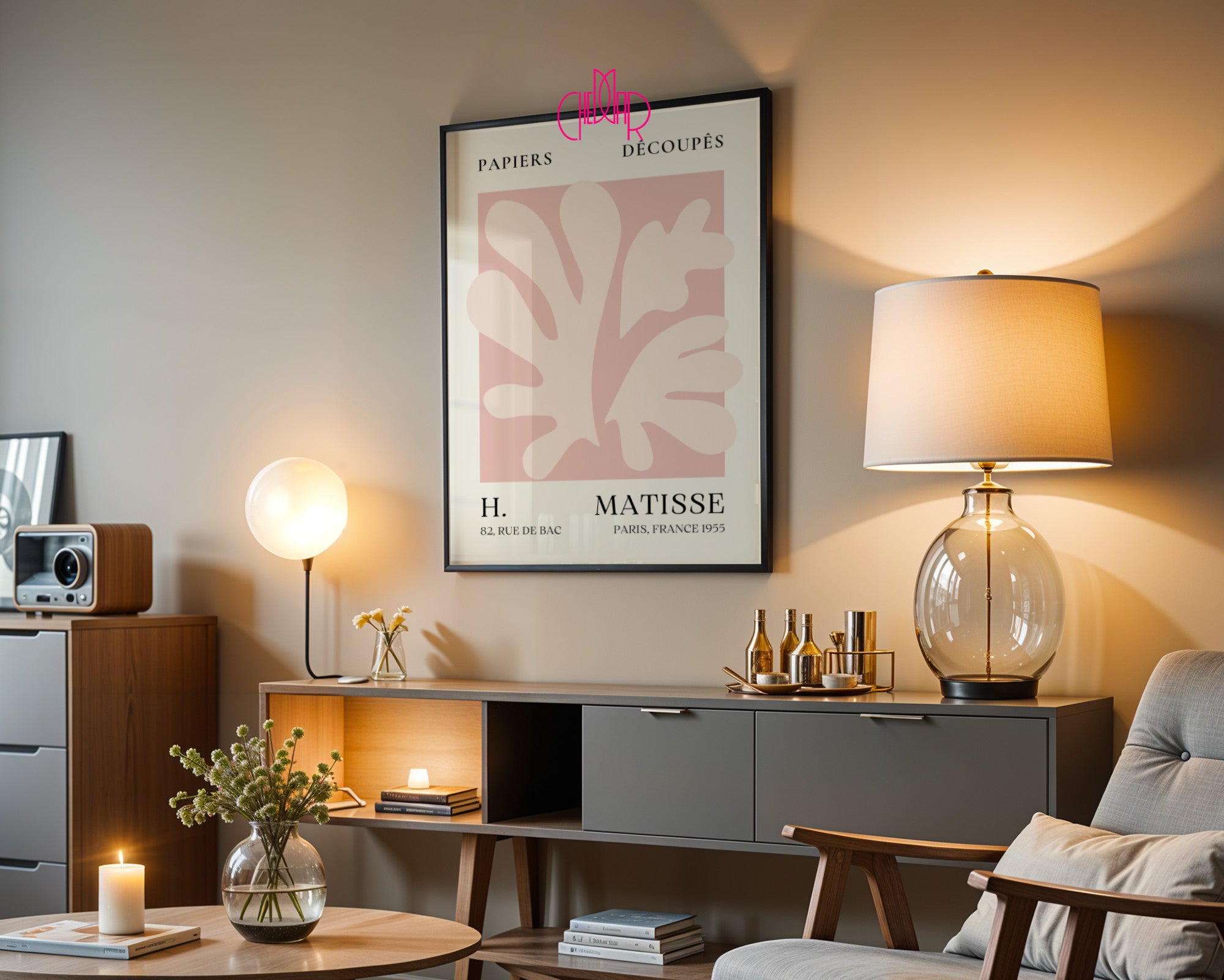 Harmonia natury w sercu Paryża Odkryj spokój płynący z jednej z najbardziej rozpoznawalnych wycinanek Henri Matisse’a, zainspirowanej organicznymi formami roślinnymi. Ten plakat przedstawia abstrakcyjne, kremowe liście na delikatnym, pudrowym tle, tworząc kompozycję pełną lekkości i swobody. Projekt nawiązuje do dziedzictwa artysty związanego z paryską Rue de Bac z 1955 roku, gdzie Matisse doskonalił swoją technikę „rysowania nożyczkami”, łącząc prostotę z głęboką wrażliwością estetyczną.