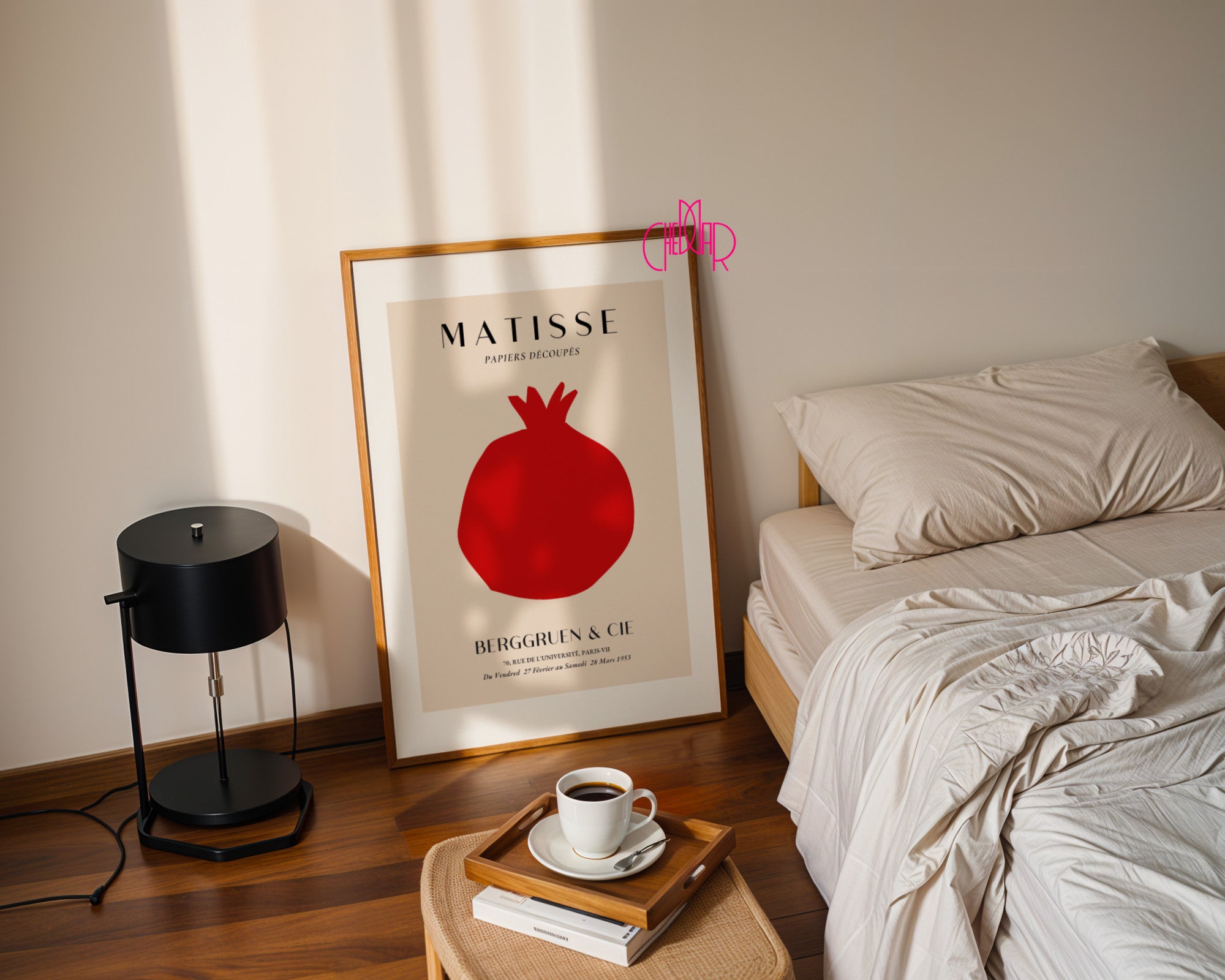 Energia koloru w minimalistycznym wydaniu Dodaj swojemu wnętrzu wyrazistego charakteru dzięki plakatowi przedstawiającemu owoc granatu – jedno z fascynujących dzieł Henri Matisse’a wykonanych techniką „Papiers Découpés”. Ta minimalistyczna, czerwona forma na ciepłym, beżowym tle to kwintesencja nowoczesnej klasyki. Plakat nawiązuje do słynnej wystawy w paryskiej galerii Berggruen & Cie z 1953 roku, łącząc w sobie historyczne dziedzictwo z designem, który nigdy nie wychodzi z mody.