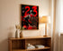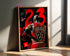Kontrastowa Paleta: Klasyczne połączenie czerni tła z jaskrawą czerwienią sprawia, że grafika jest niezwykle czytelna i przyciąga wzrok nawet z dużej odległości.