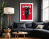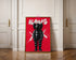 Intensywna Paleta Barw: Połączenie nasyconej czerwieni tła z czernią postaci tworzy klasyczny, a zarazem drapieżny kontrast, który przyciąga wzrok z dużej odległości.