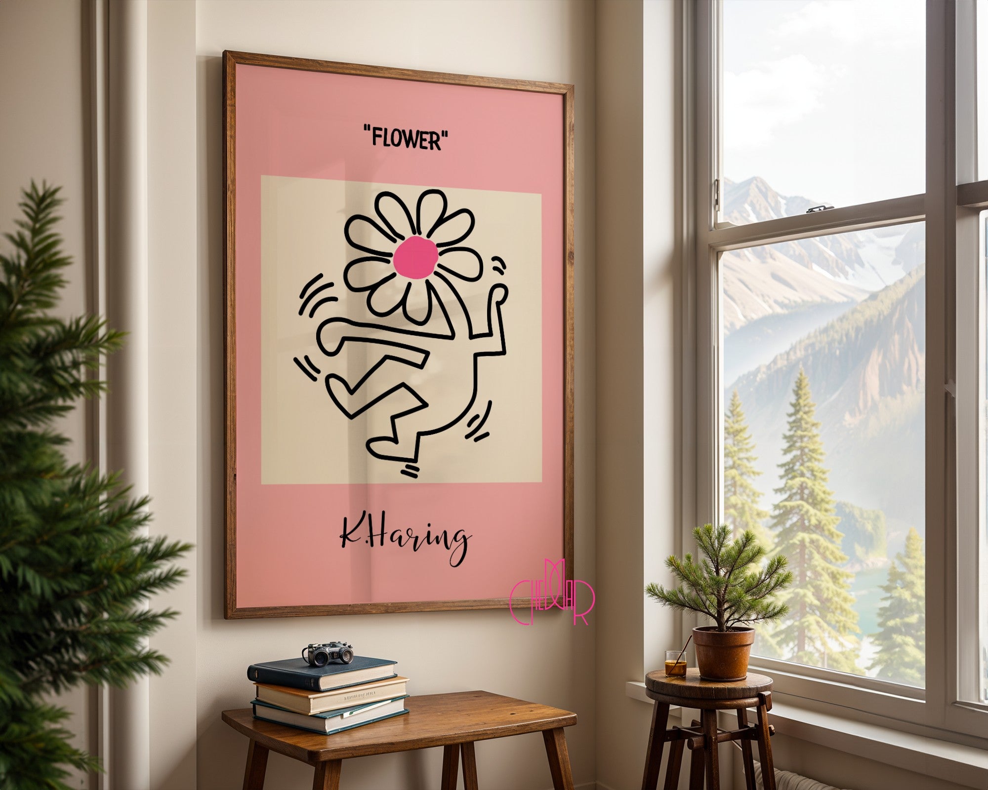 Plakat Keith Haring Flower, tańczący kwiat, street art, pop art