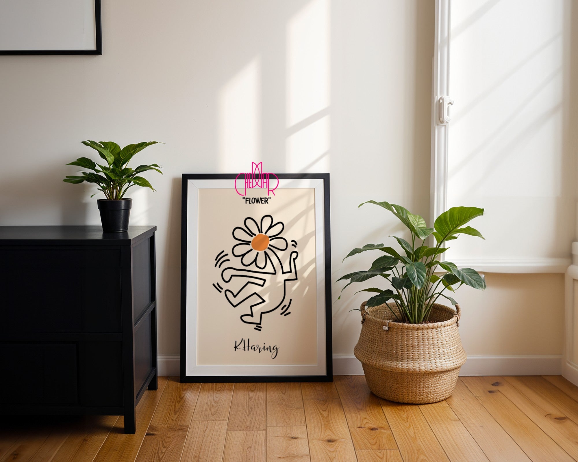 Wprowadź kolor i pozytywną energię do swojego wnętrza dzięki plakatowi inspirowanemu Keith Haringiem – „Flower”. Dynamiczna, pełna życia kompozycja przedstawia charakterystyczne dla Haringa, ruchliwe postacie w wyrazistym, prostym stylu. Kontrastowe kolory i uniwersalne symbole celebrują miłość, wolność i równość, tworząc dekorację, która przyciąga wzrok i pobudza wyobraźnię.