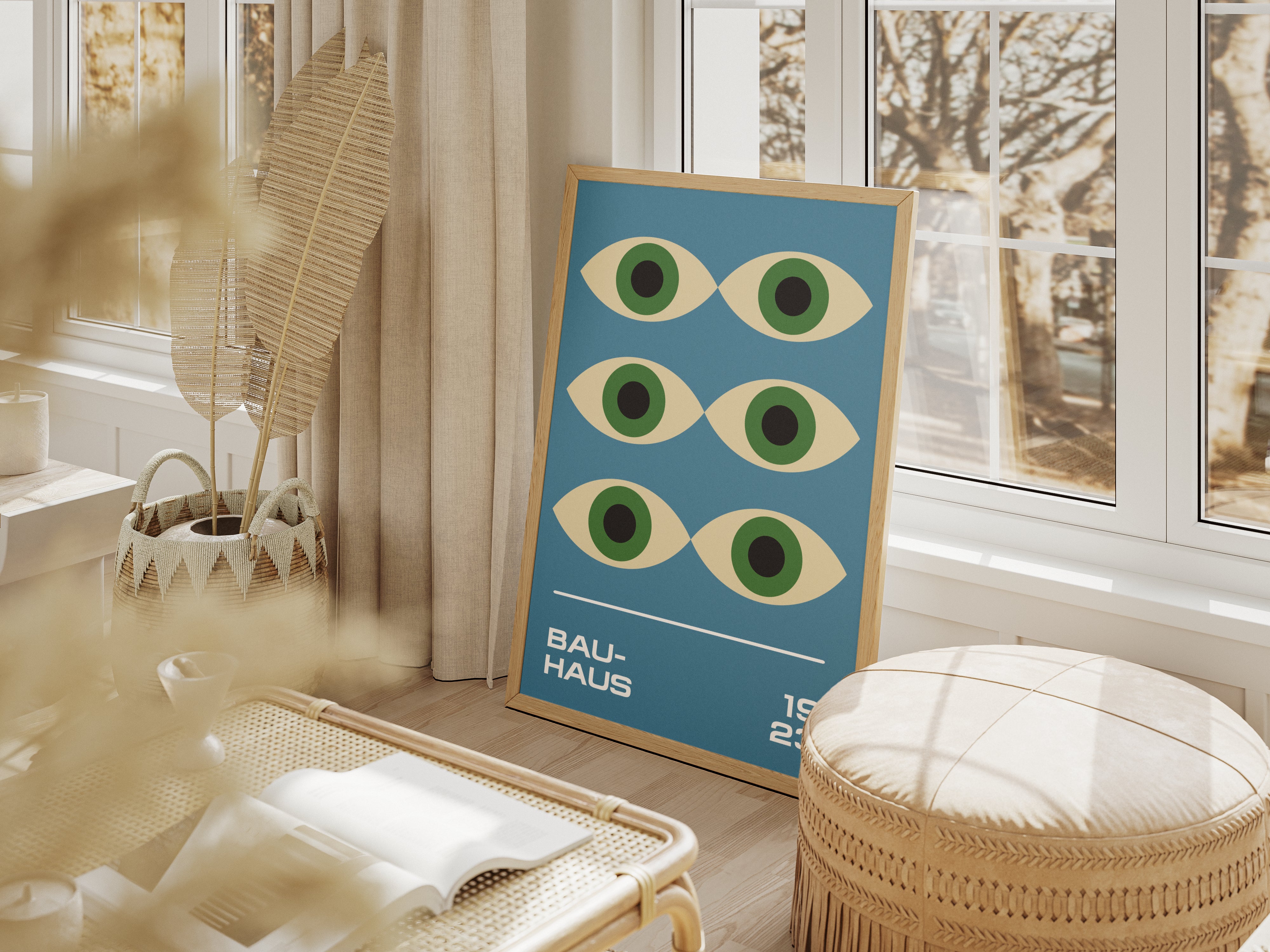 Szukasz wyjątkowej dekoracji, która doda Twojemu wnętrzu charakteru i stylu? Nasze plakaty inspirowane twórczością Bauhaus to idealny wybór! Wspaniały plakat przedstawiający oczy proroka w kolorze zielonym na pomarańczowym tle, inspirowane plakatem Bauhaus z 1923 roku.