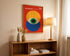 Plakat Bauhaus - pomarańczowo-granatowe koła z zielonym "Okiem Proroka" na czerwonym tle