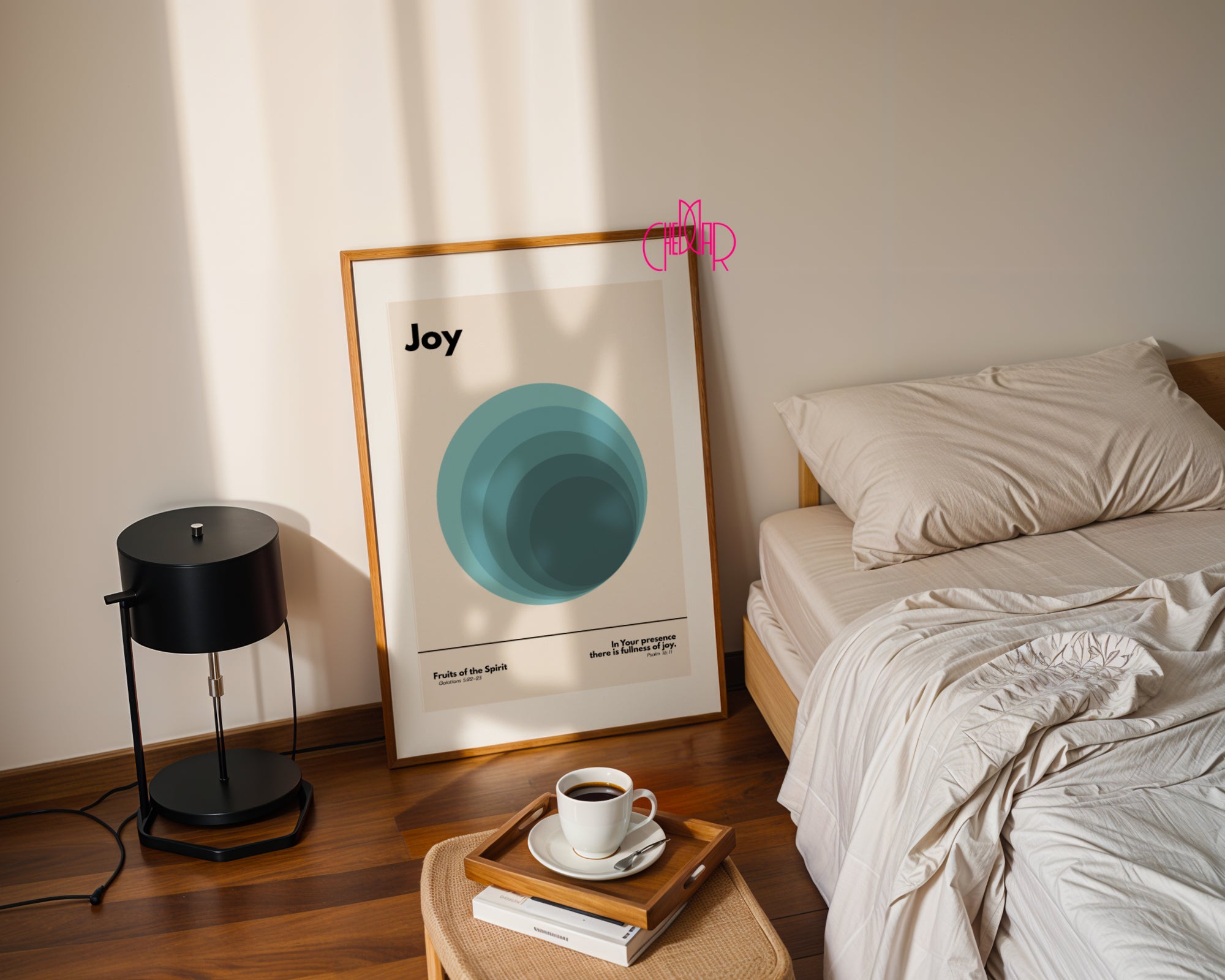 Kolekcja „Dary Ducha Świętego - radość" to wyjątkowa seria plakatów w stylu Bauhaus, łącząca ponadczasowe wartości wiary z nowoczesnym, geometrycznym designem. Minimalistyczne formy, harmonijne kolory i czytelna symbolika nawiązują do darów Ducha Świętego, takich jak miłość, pokój, radość czy mądrość, tworząc współczesną interpretację sztuki sakralnej.