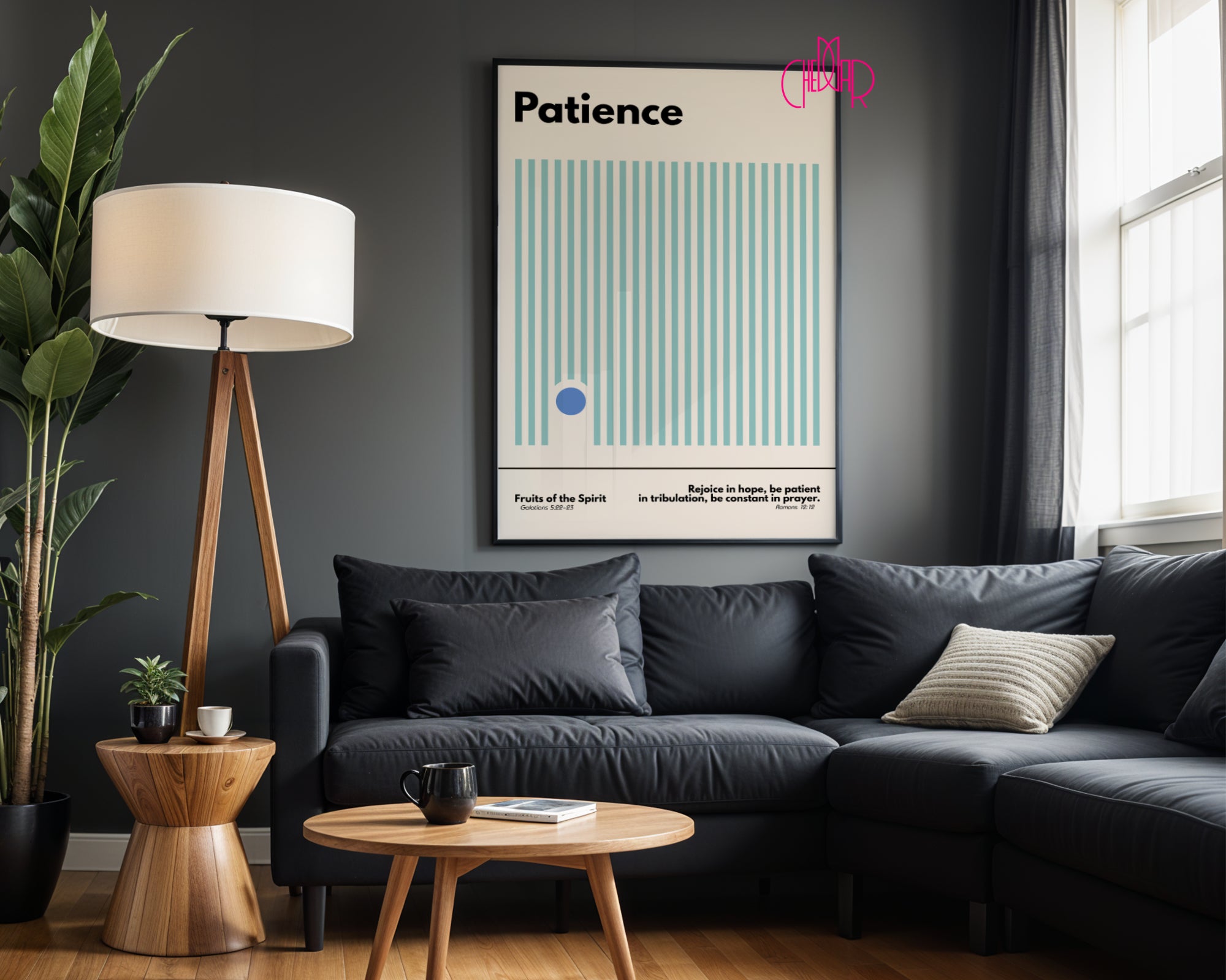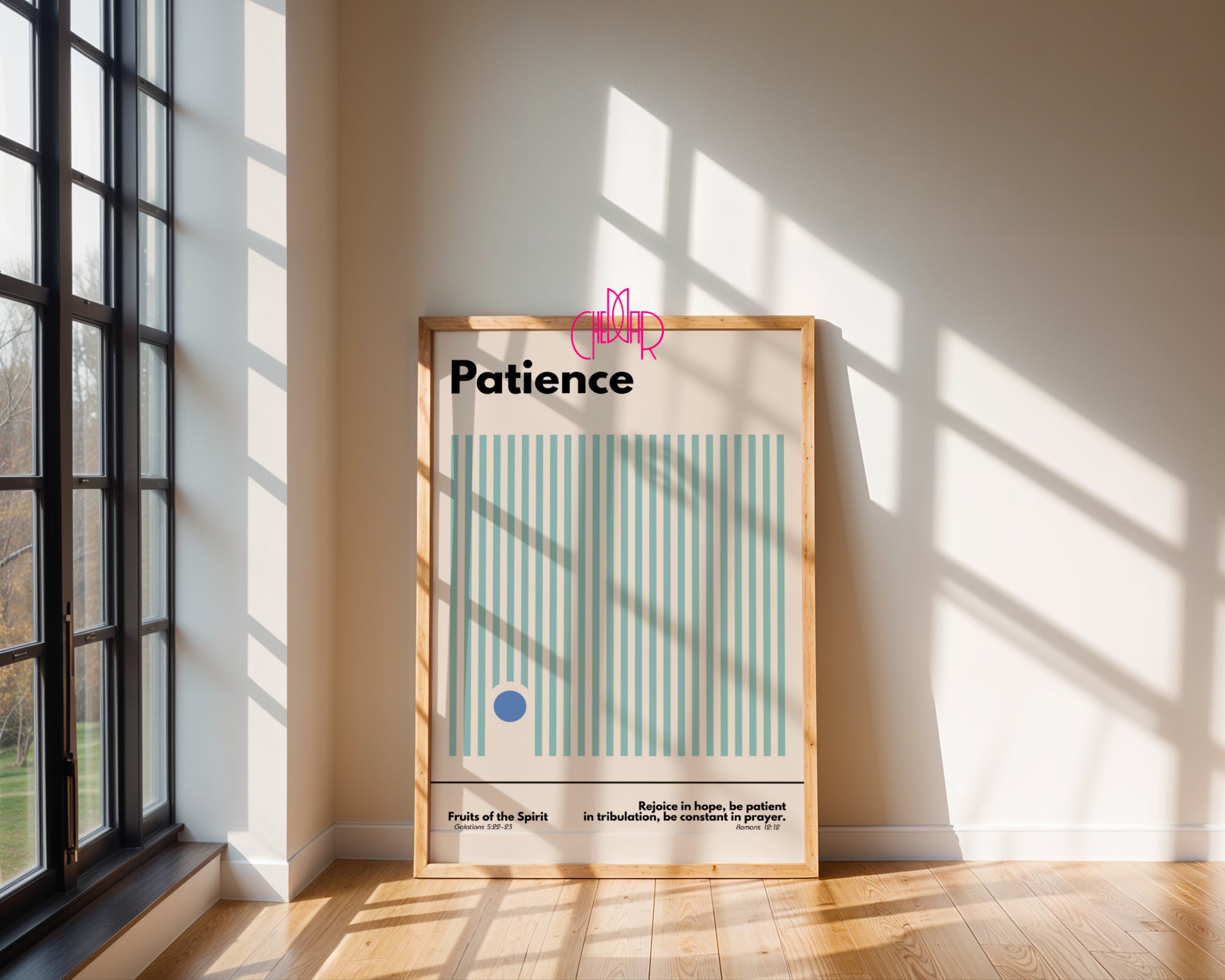Kolekcja „Dary Ducha Świętego - cierpliwość" to wyjątkowa seria plakatów w stylu Bauhaus, łącząca ponadczasowe wartości wiary z nowoczesnym, geometrycznym designem. Minimalistyczne formy, harmonijne kolory i czytelna symbolika nawiązują do darów Ducha Świętego, takich jak miłość, pokój, radość czy mądrość, tworząc współczesną interpretację sztuki sakralnej.