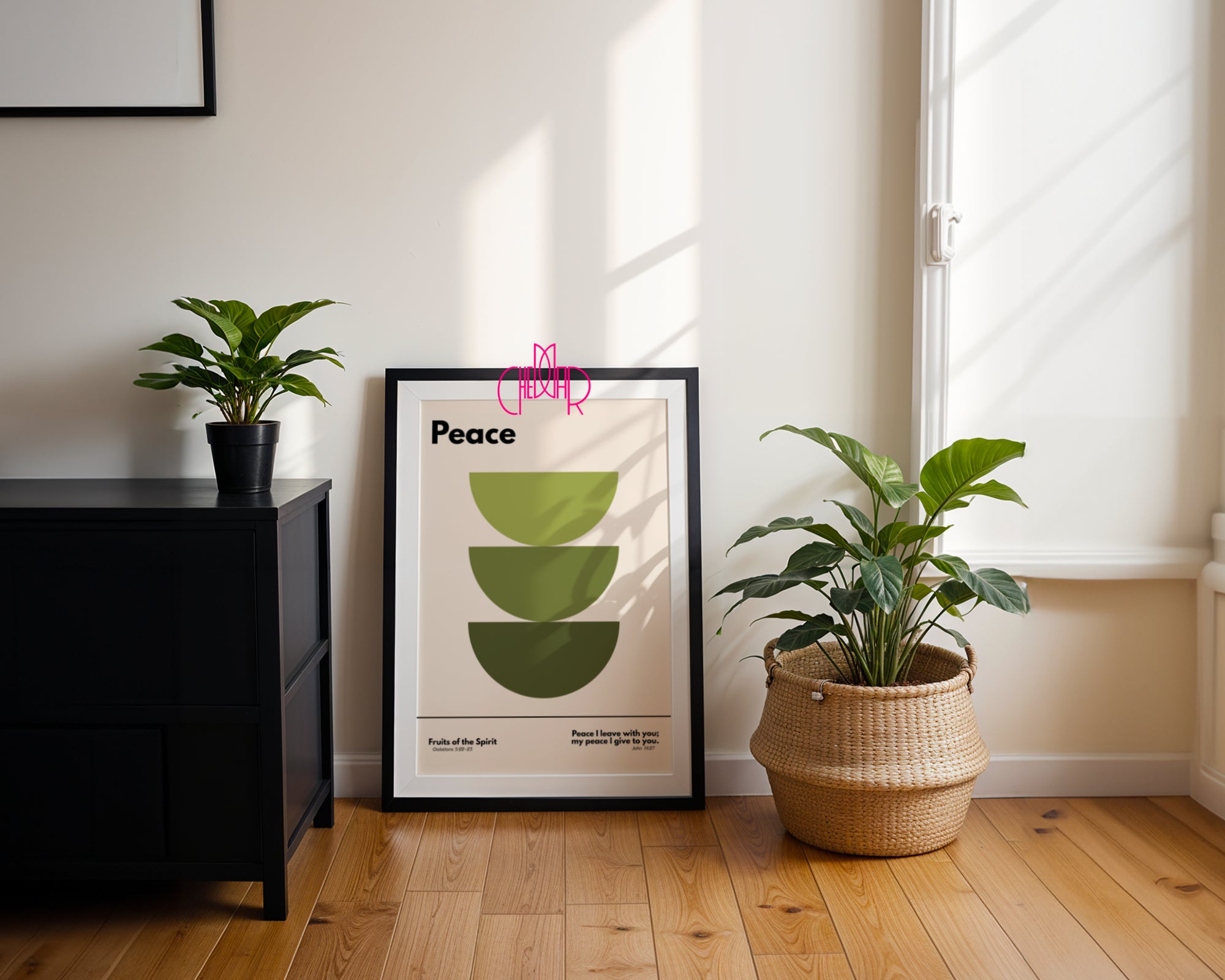 Kolekcja „Dary Ducha Świętego - pokój" to wyjątkowa seria plakatów w stylu Bauhaus, łącząca ponadczasowe wartości wiary z nowoczesnym, geometrycznym designem. Minimalistyczne formy, harmonijne kolory i czytelna symbolika nawiązują do darów Ducha Świętego, takich jak miłość, pokój, radość czy mądrość, tworząc współczesną interpretację sztuki sakralnej.