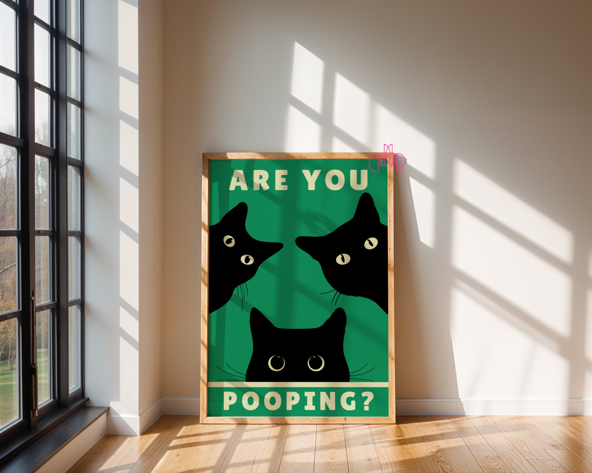 Plakat "Are You Pooping ?" z czarnymi kotami