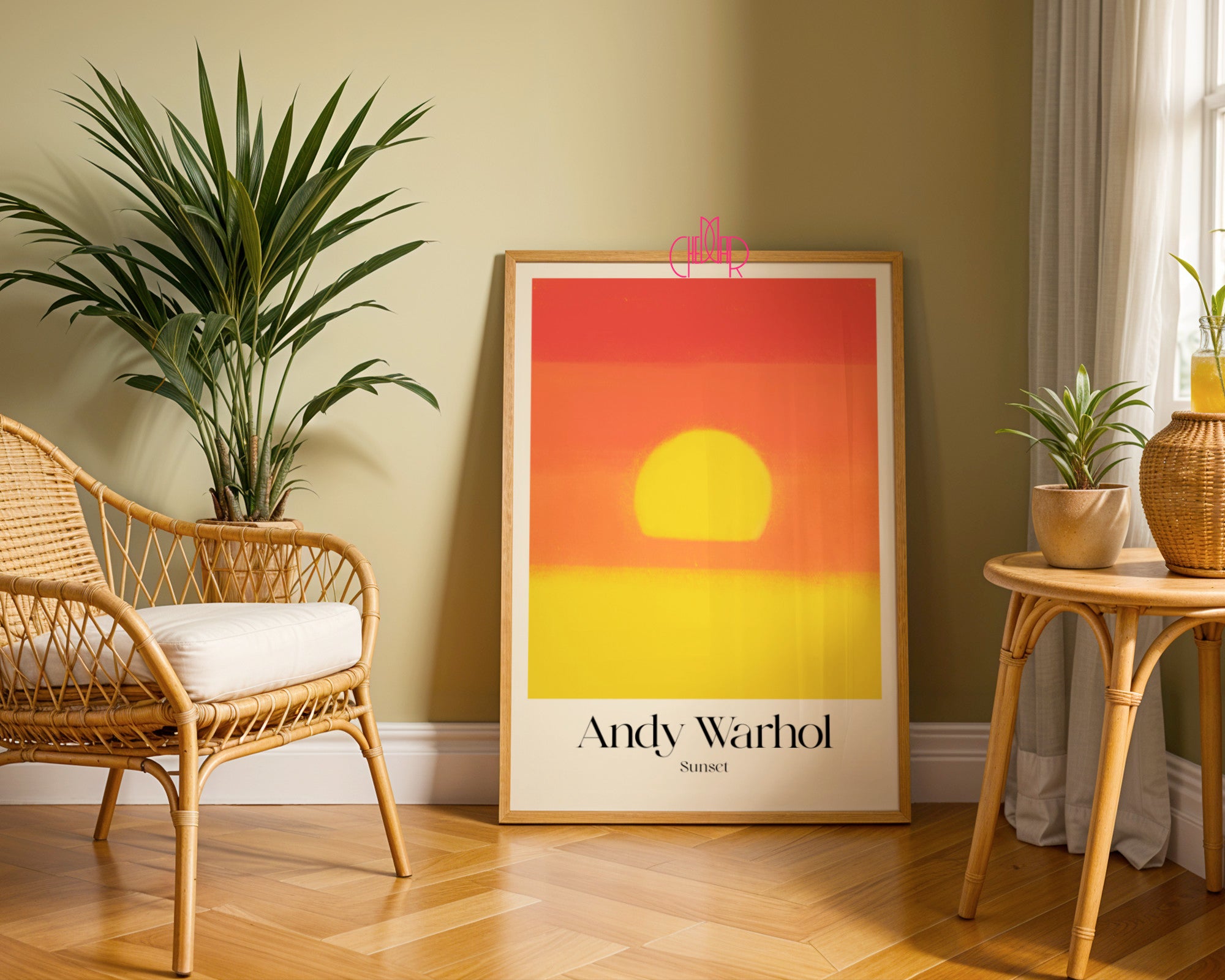 Poczuj wibracje legendarnych lat 60. dzięki jednej z najbardziej ikonicznych grafik Andy’ego Warhola. Ten wyjątkowy poster to odważna, minimalistyczna interpretacja zachodzącego słońca, gdzie intensywna żółć spotyka się z nasyconym pomarańczem i głęboką czerwienią. To esencja estetyki pop-art – projekt, który rezygnuje ze skomplikowanych form, by skupić się na hipnotyzującej sile czystej barwy.
