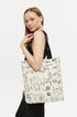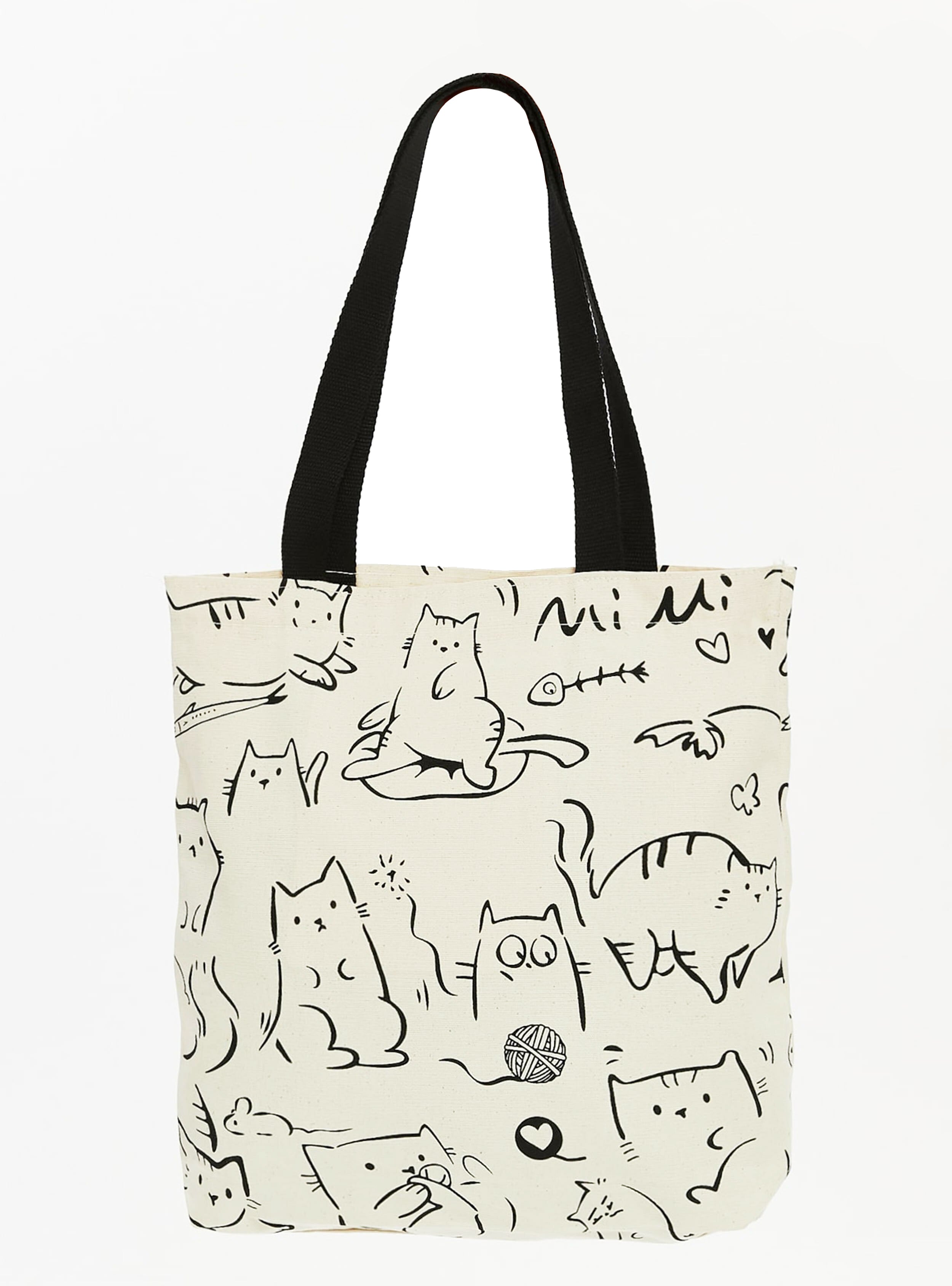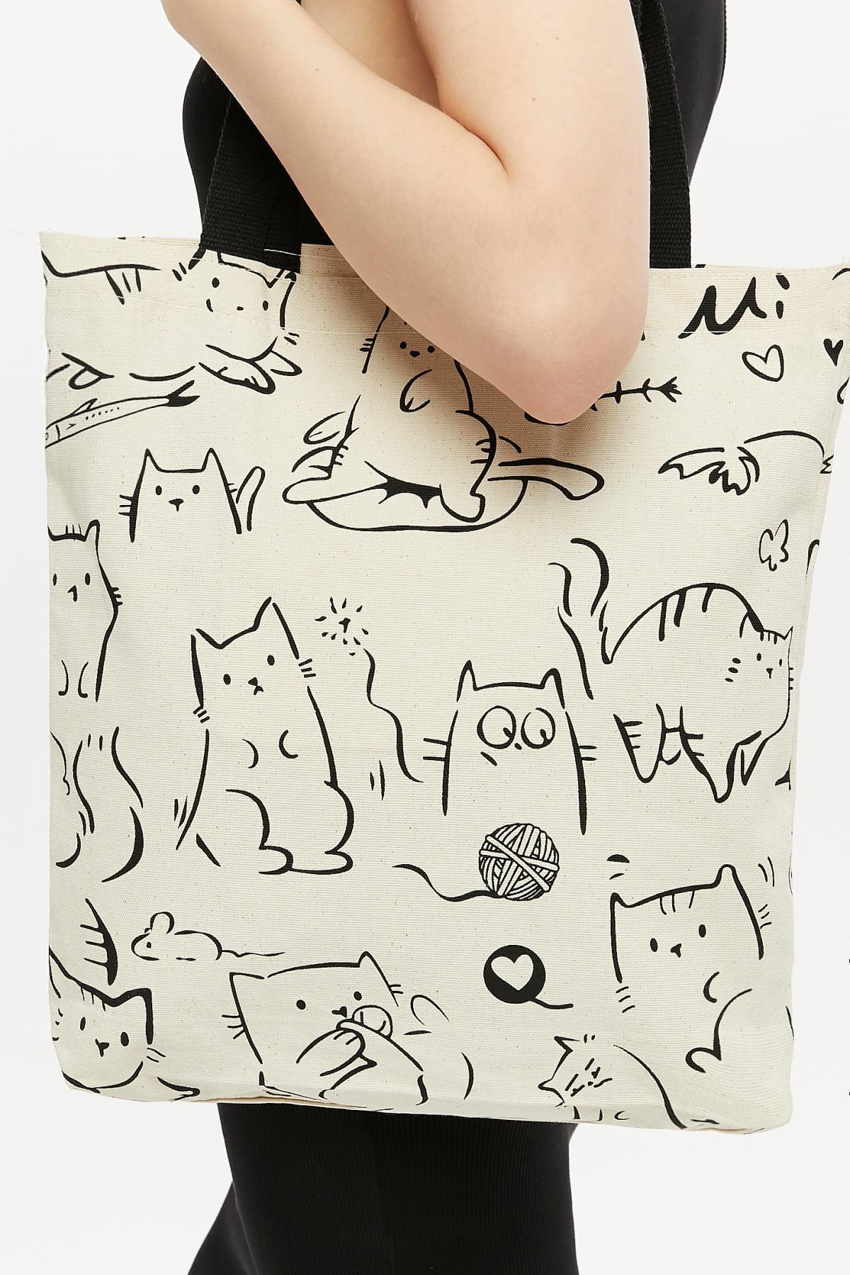 Torba bawełniana na ramię typu shopper z motywem kotów, stylowa, pojemna, na zamek, na co dzień, na zakupy.
