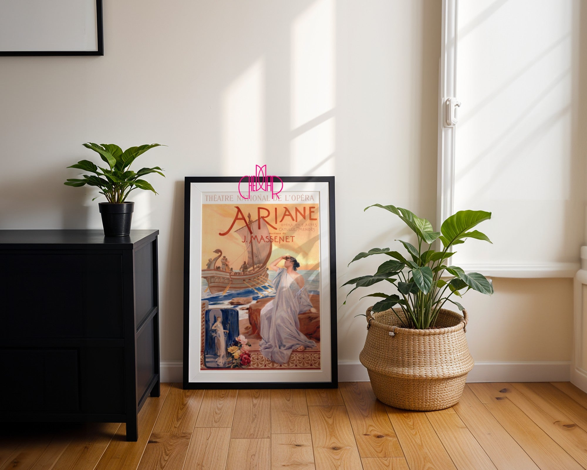 Zanurz się w romantyzmie, dramacie i pięknie secesyjnej estetyki! Ten wyjątkowy plakat operowy przenosi nas do świata klasycznej muzyki, mitologii i emocji. Przedstawia Ariadnę, porzuconą na skalistym wybrzeżu, wypatrującą znikającego statku Tezeusza. Subtelne kolory, zmysłowe światło zachodu słońca i secesyjne detale nadają całości romantycznego i melancholijnego charakteru.