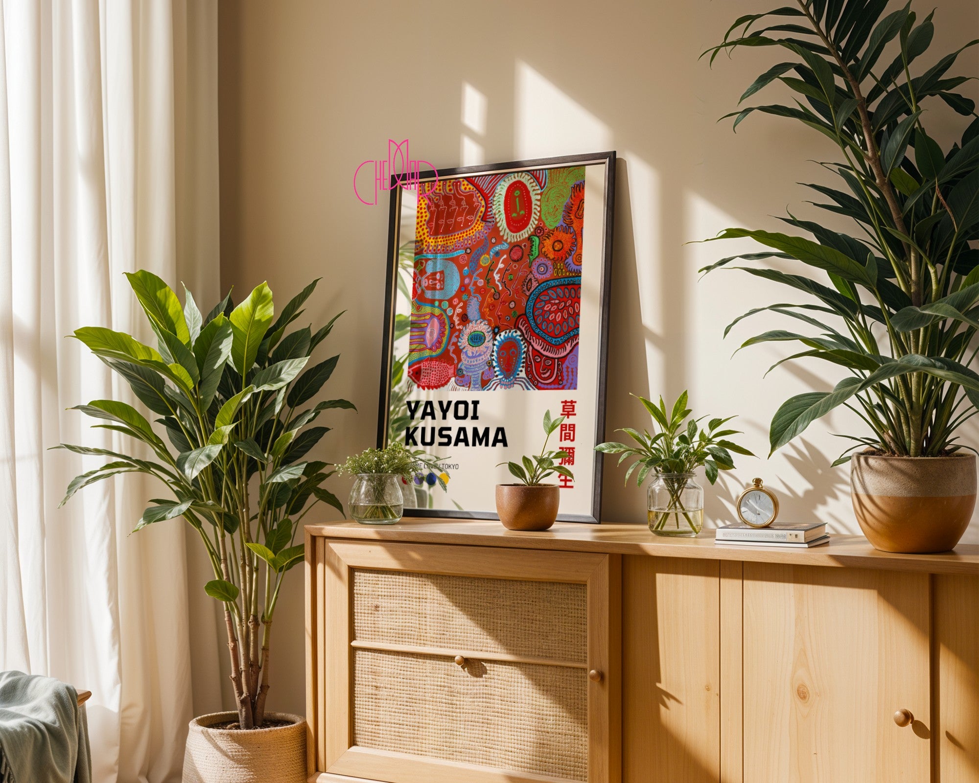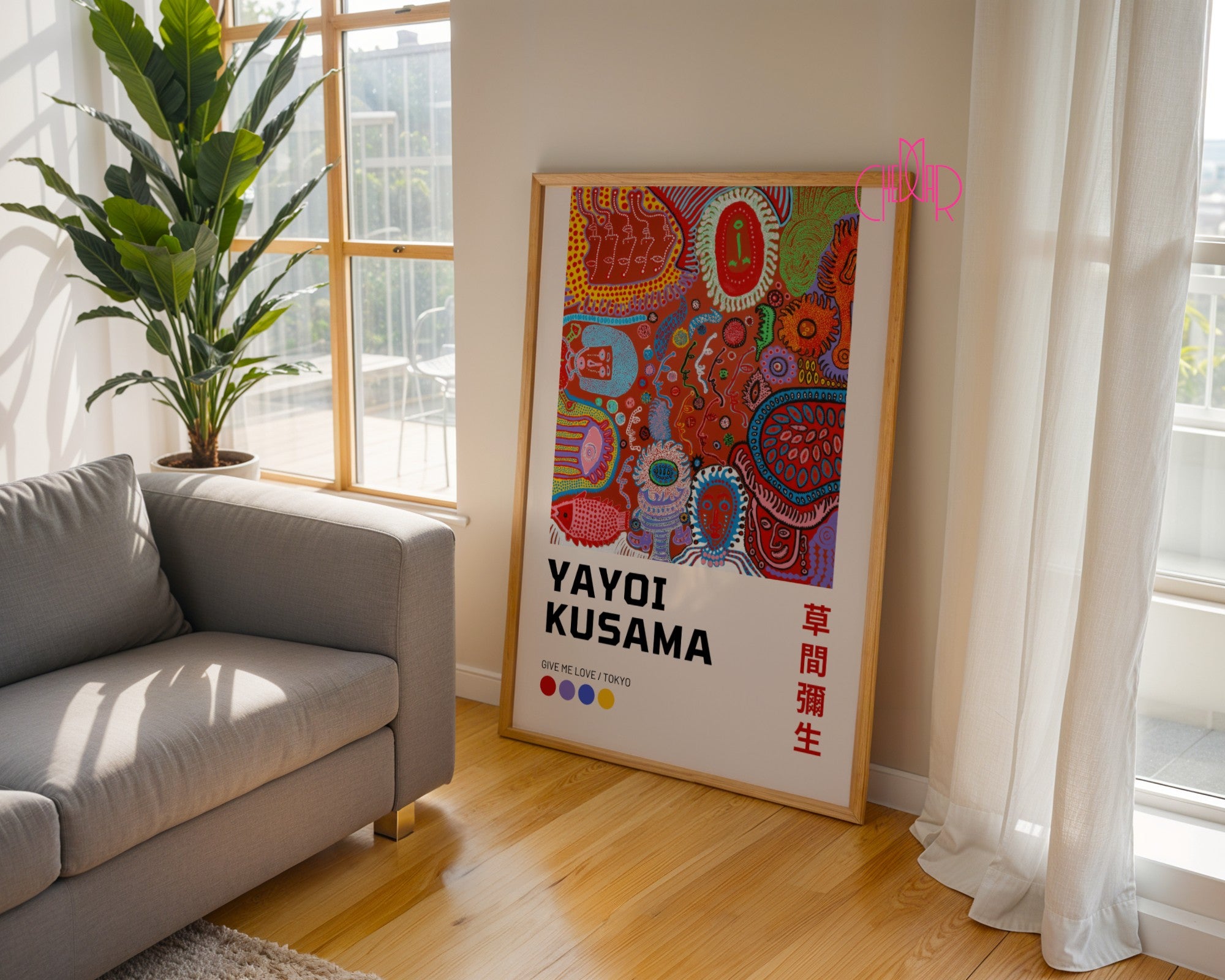 Dodaj wyjątkowy akcent do swojego wnętrza dzięki plakatowi inspirowanemu Yayoi Kusamą – „Give me love, daj mi miłość, Tokyo”. To idealna dekoracja dla miłośników sztuki współczesnej, hipnotyzujących kształtów i kreatywnych, odważnych ilustracji. Świetnie sprawdzi się w salonie, sypialni, biurze, pracowni artystycznej, a także w kawiarni, restauracji czy hotelu.