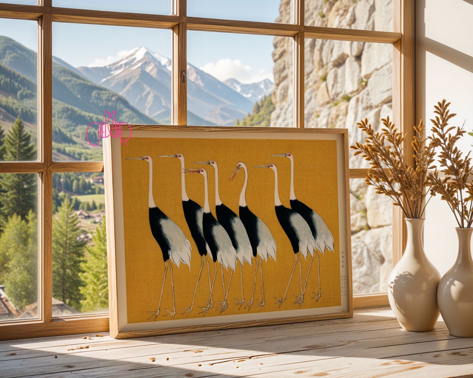 Wprowadź do swojego wnętrza wyjątkowy klimat Dalekiego Wschodu dzięki plakatowi przedstawiającemu Żurawie na pomarańczowym tle. To dekoracja, która nadaje wnętrzu elegancji, spokoju i jednocześnie mocnego, artystycznego charakteru.